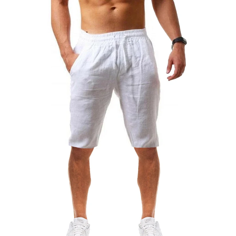 Летние новые стильные мужские повседневные спортивные хлопковые и льняные удобные модные шорты штаны для бега