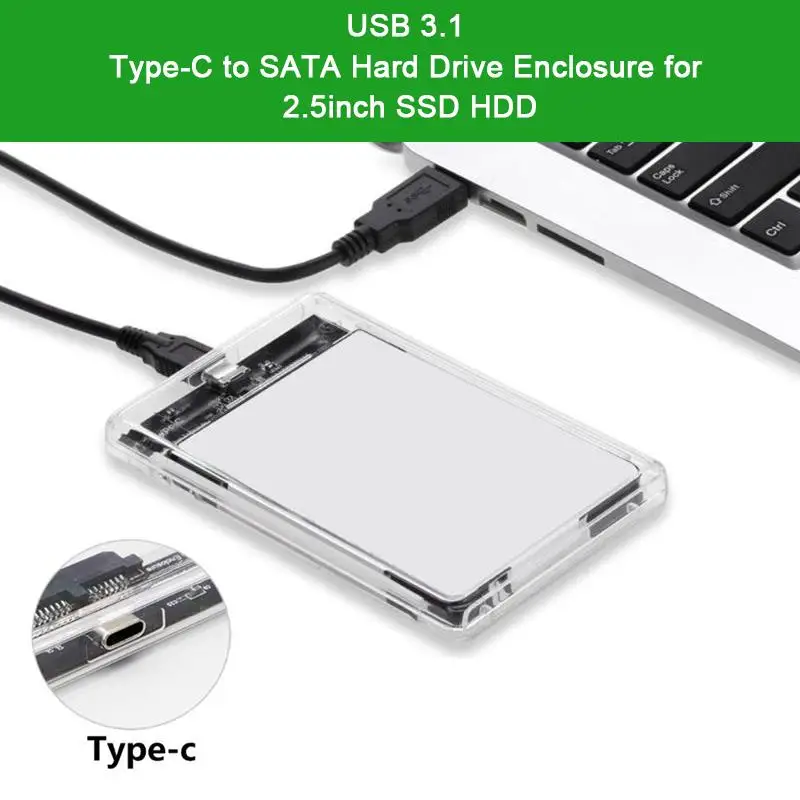 Портативный прозрачный чехол для жесткого диска 2,5 дюйма USB 3,1 G...