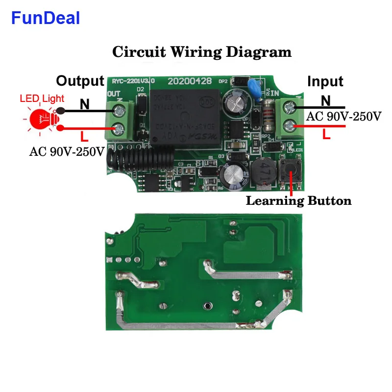 Подождите немного, светодиодный индикатор включится, он войдет в состояние обучения.Нажмите кнопку дистанционного управления, светодиодный индикатор на плате приемника будет мигать 3 раза, а затем выключаться,Обучение успешно.