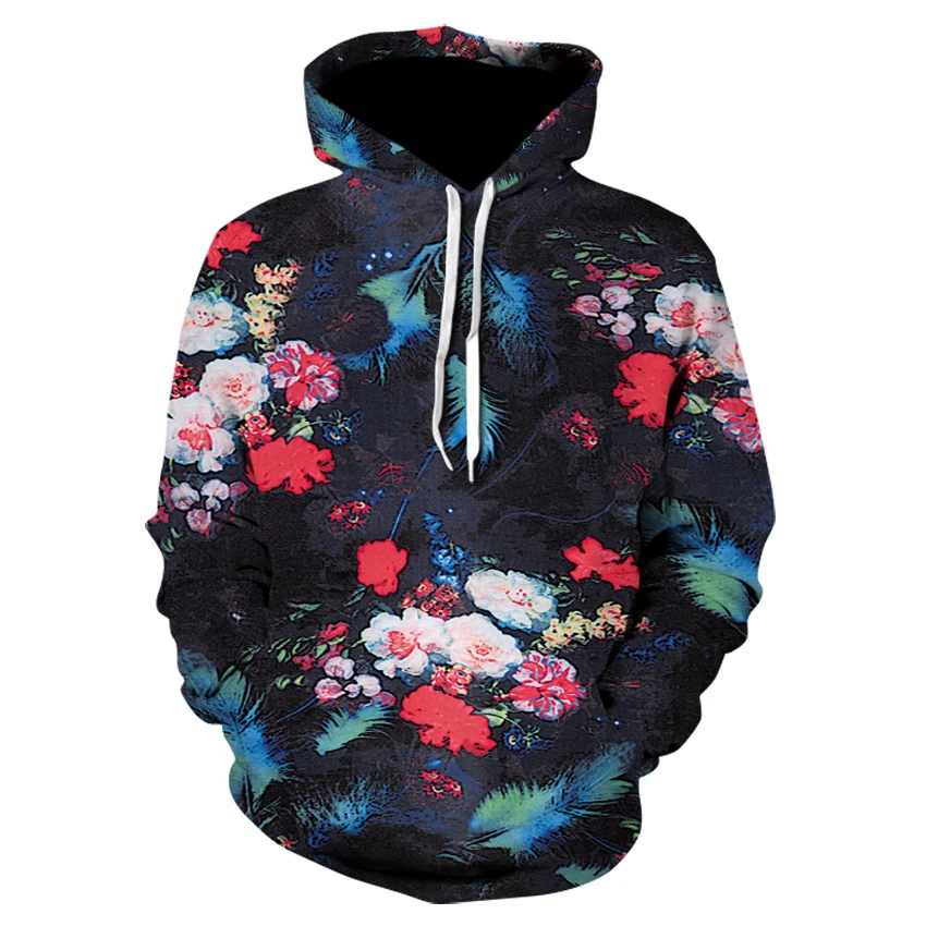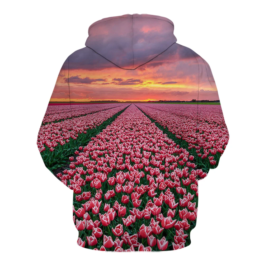 Толстовка с капюшоном для мужчин и женщин, свободная повседневная Уличная одежда с длинным рукавом, с 3D принтом цветов, роз, тюльпанов