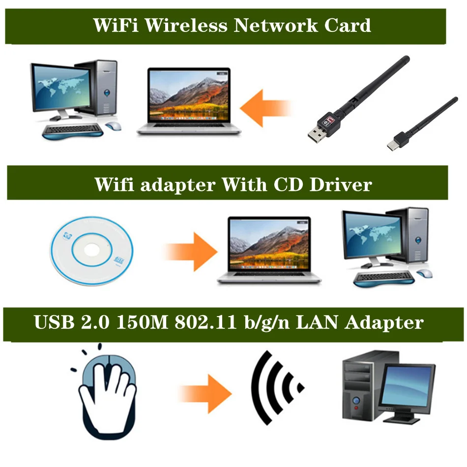 Wi-Fi беспроводная сетевая карта USB 2,0 150M 802,11 bgn, адаптер локальной сети со стандартом памяти для ноутбука, ПК, мини Wi-Fi донгл
