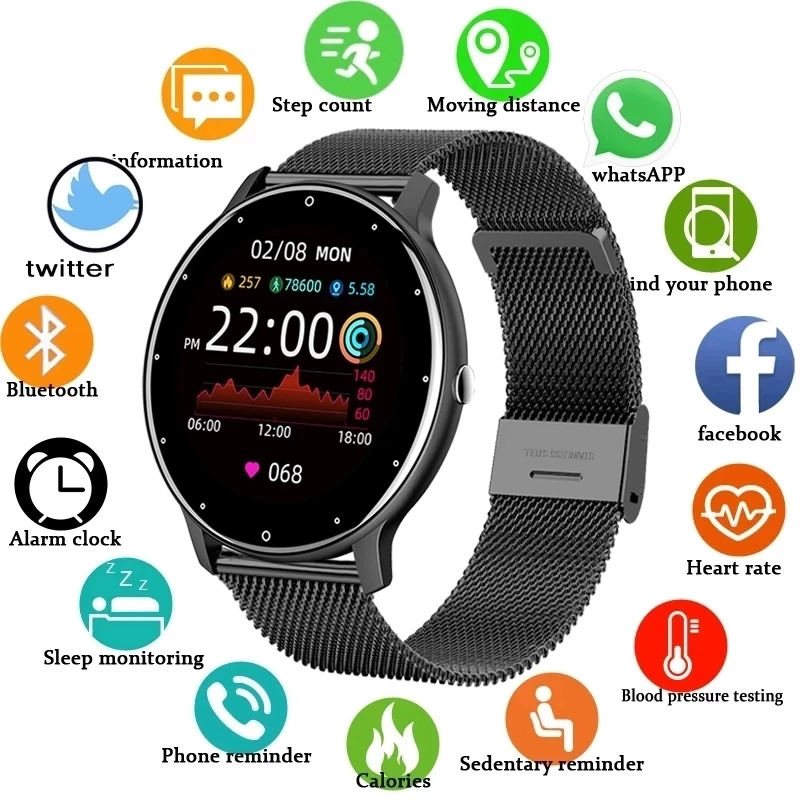 2021 Модные Смарт-часы для женщин и мужчин, спортивные, пульсометр, кровяное давление, фитнес-трекер, водонепроницаемые умные часы для iOS Android