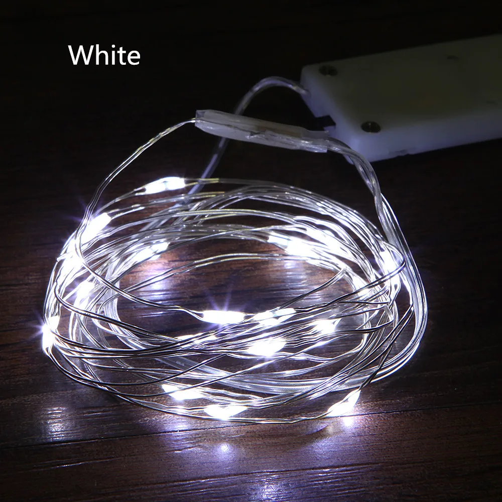 Светодиодная лента, 1-10 м, 10-100 светодиодов, уличная гирлянда, украшение для свадьбы, на батарейках, серебристая, медная