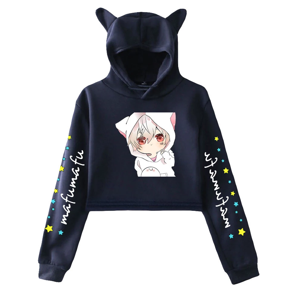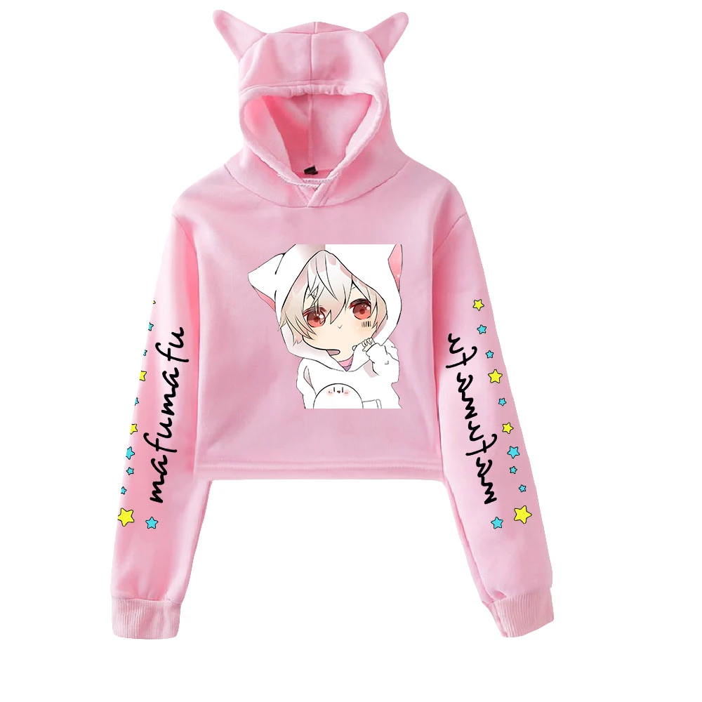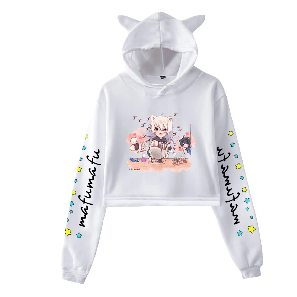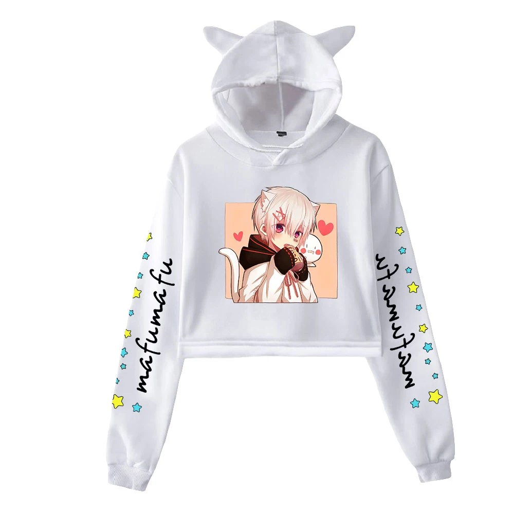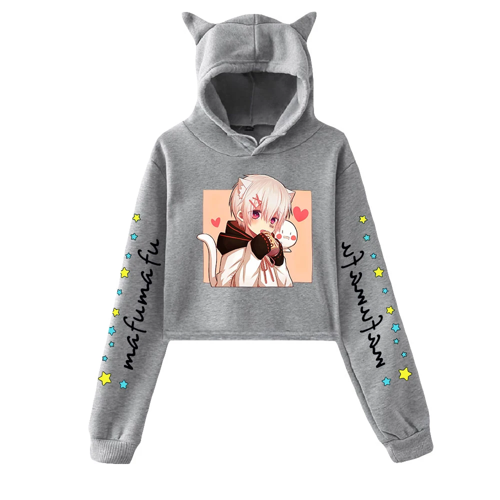 Милая Толстовка с принтом кота сорару после дождя, Короткая Толстовка с капюшоном и длинным рукавом для девушек