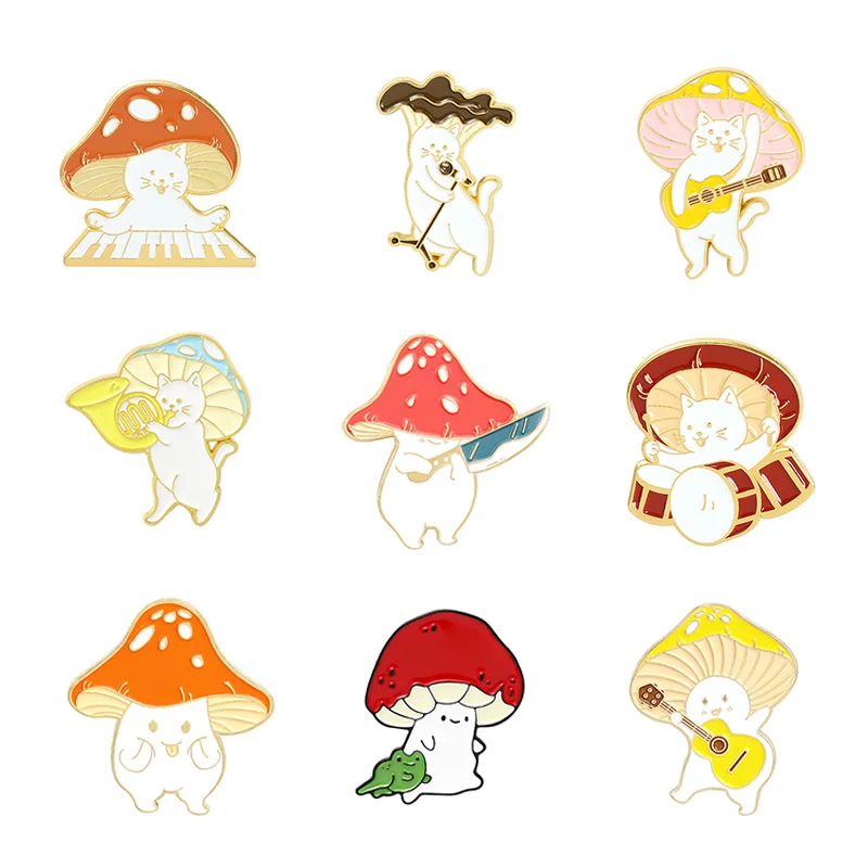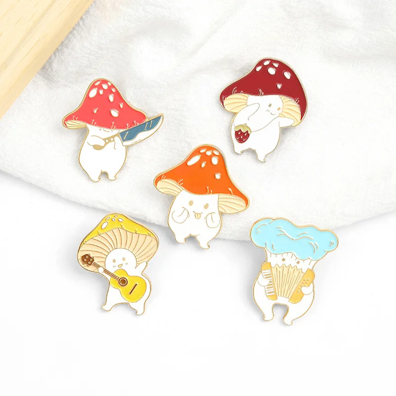 Брошь на лацкан с изображением милого гриба, гитары, аккордеон