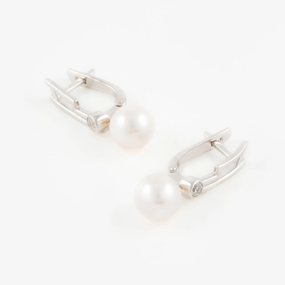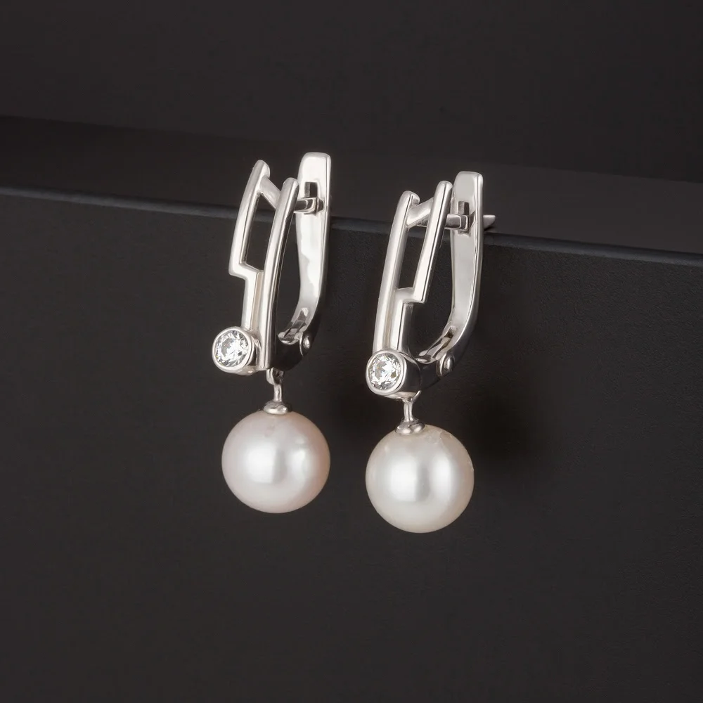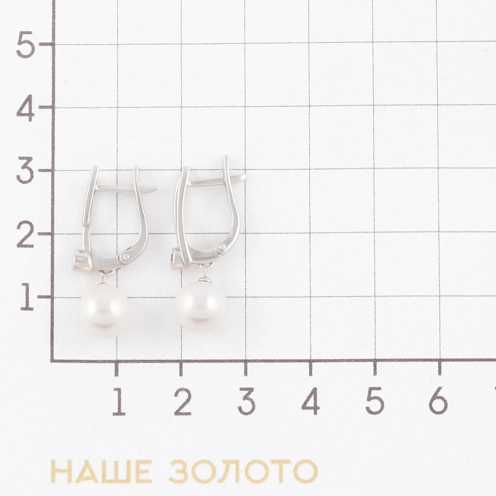 Серебряные серьги подвесные с жемчугом и сваровски 000-365552 НАШЕ ЗОЛОТО Our gold