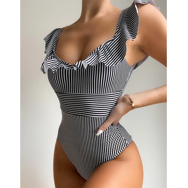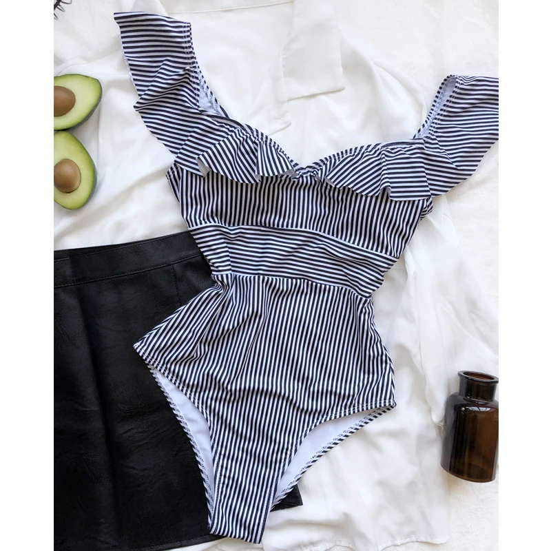 Слитный купальник Peachtan в полоску, женский купальник с оборками, Женский винтажный Монокини 2021, спортивный купальный костюм, пляжная одежда, купальный костюм