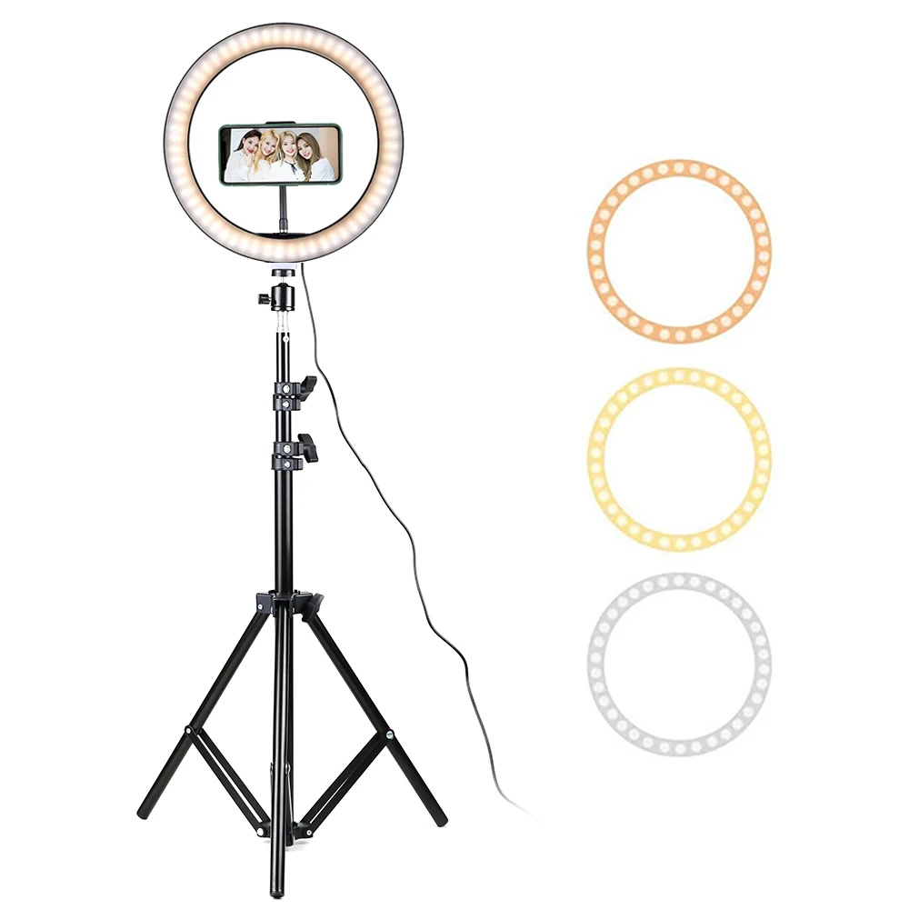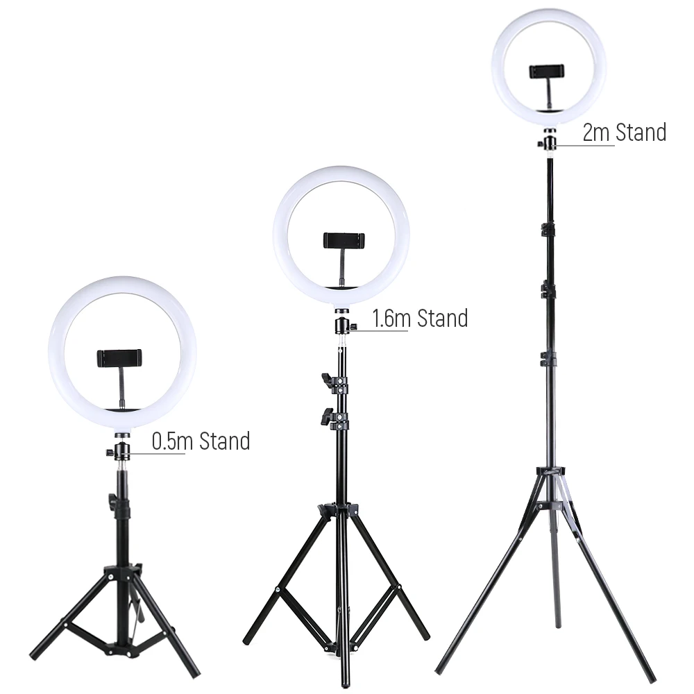 Кольцевой светодиодный светильник для селфи 10-13 дюймов, со штативом 2 м1,6 м
