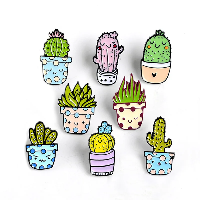 Эмалированные заколки в виде кактуса в горшке, симпатичная мультяшн...