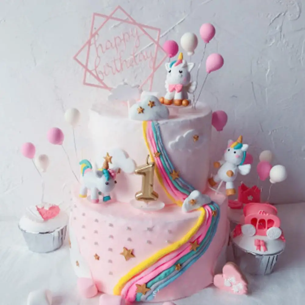 Украшение для торта, из мягкой глины, с радужным единорогом