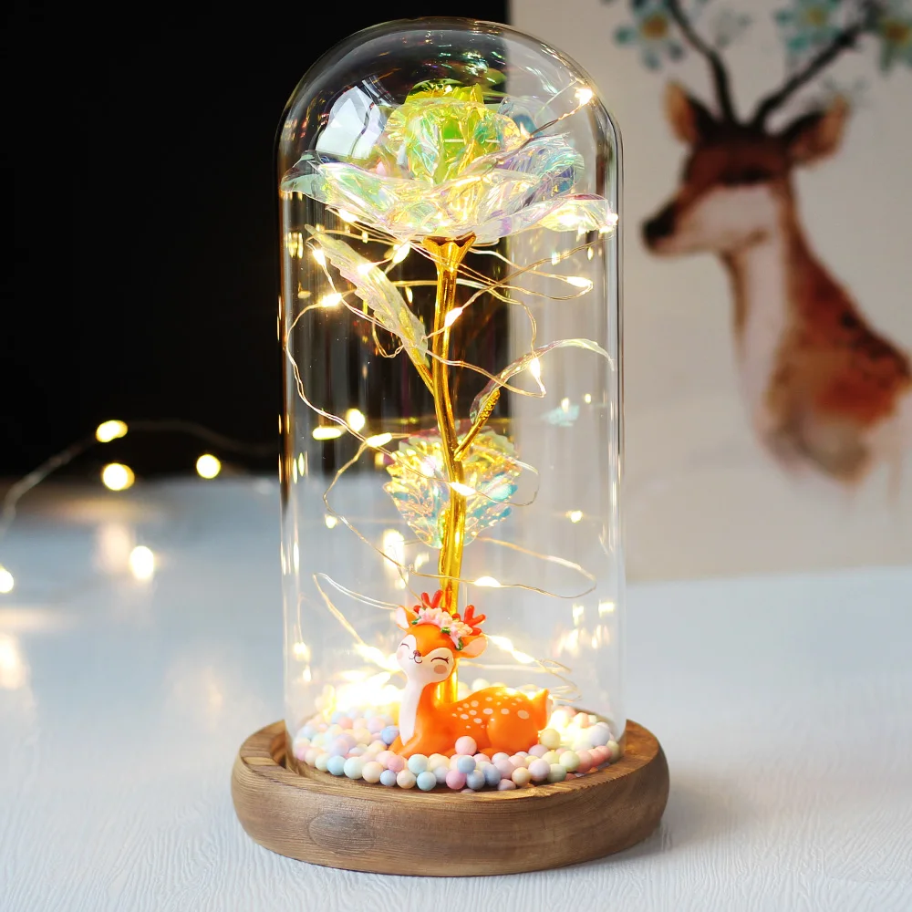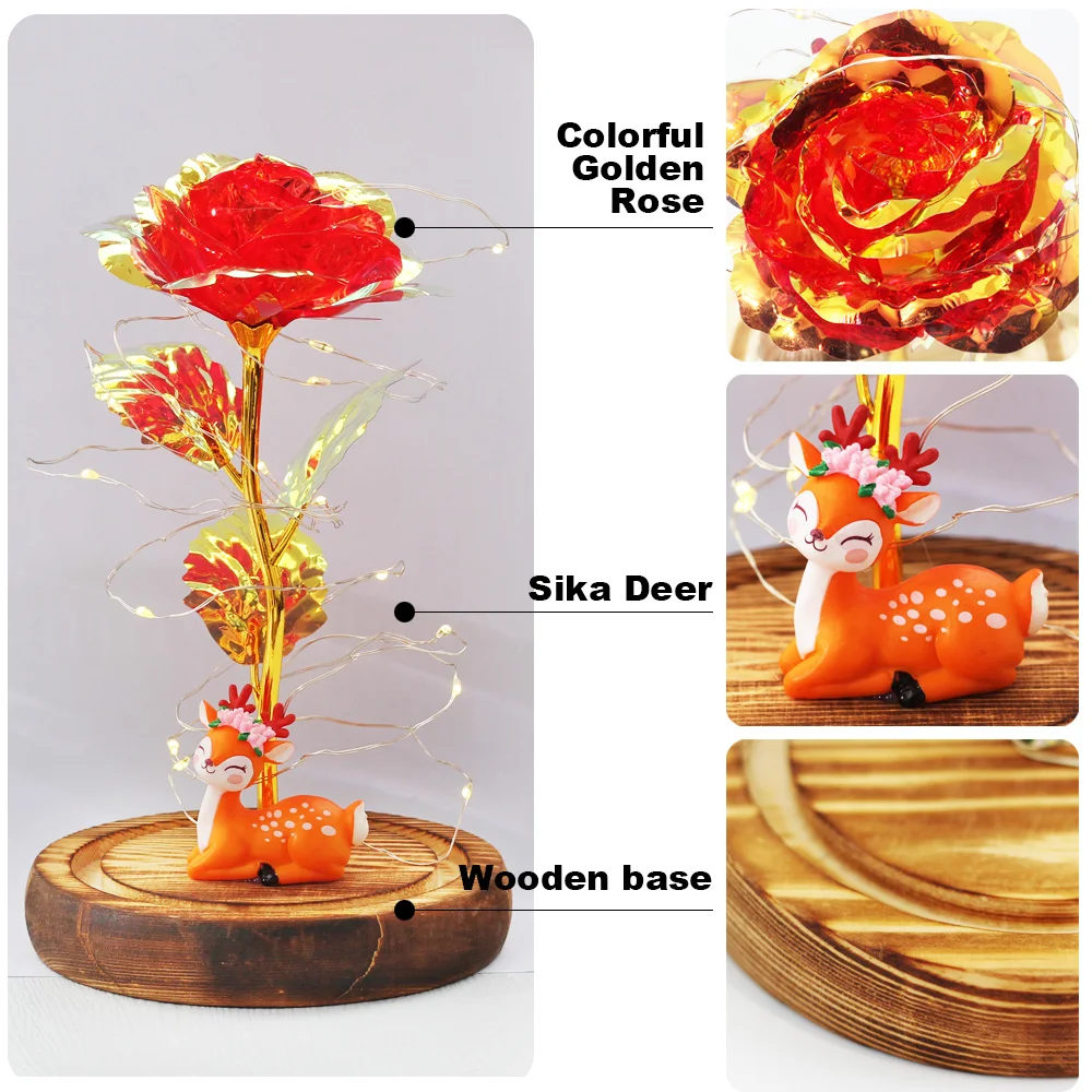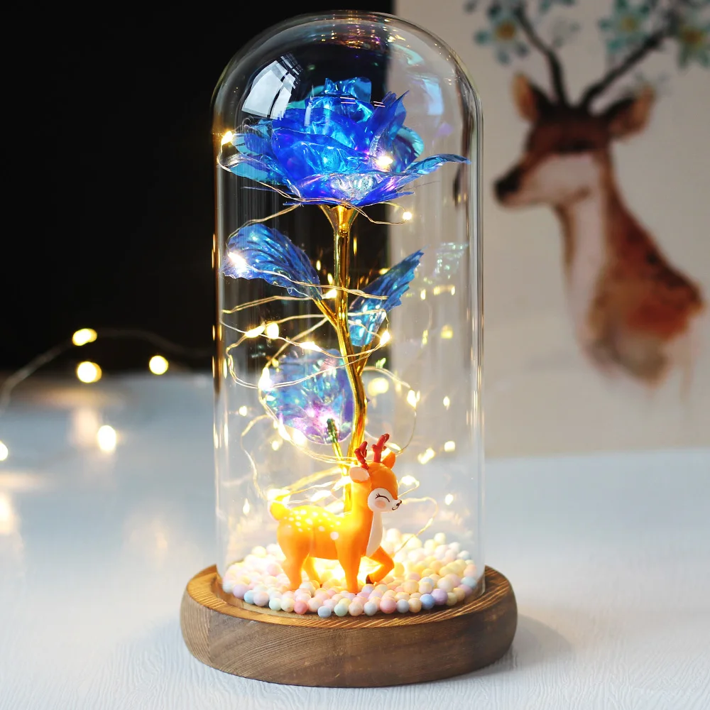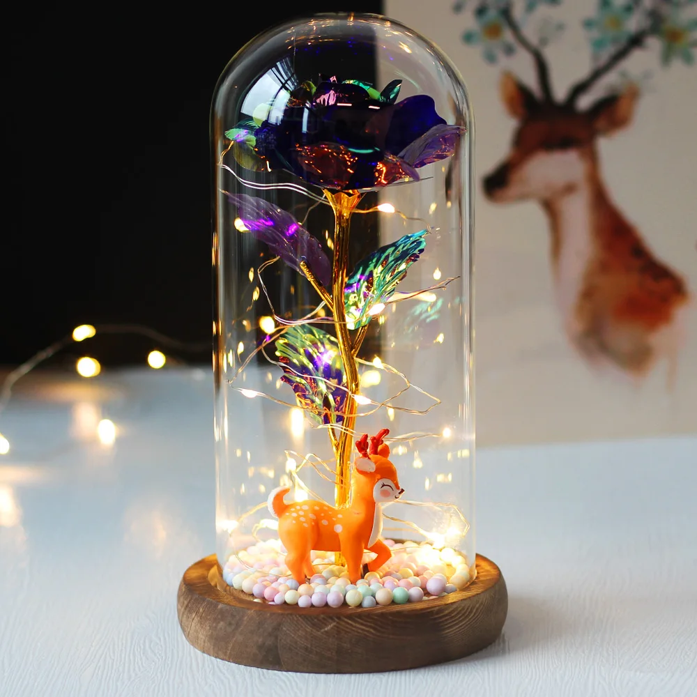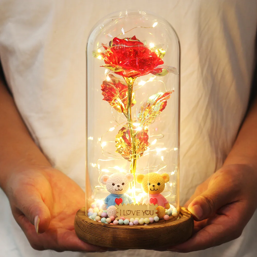 Мишка Тедди светодиодная очарованная Галактическая Роза вечная 24K Золотая фольга искусственный цветок с ночным светом домашний декор для вечеринки свадебный подарок