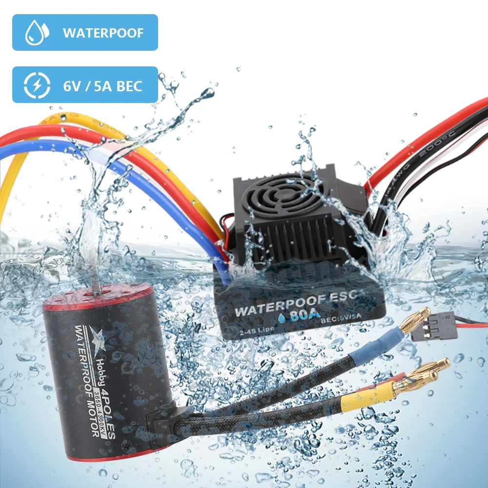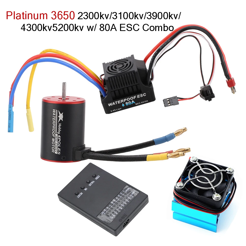 Платиновый водонепроницаемый бесщеточный двигатель 3650 2300kv 3100kv 3900kv 4300kv 5200kv w 80A бесщеточный ESC Комбинированный набор для 18 110 RC Car