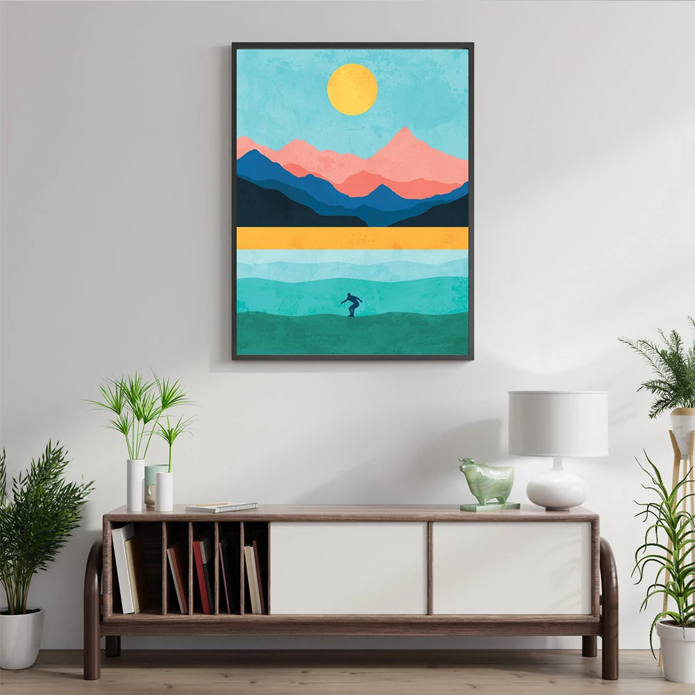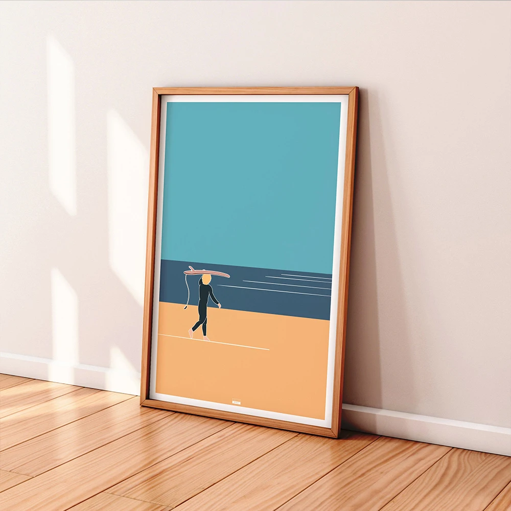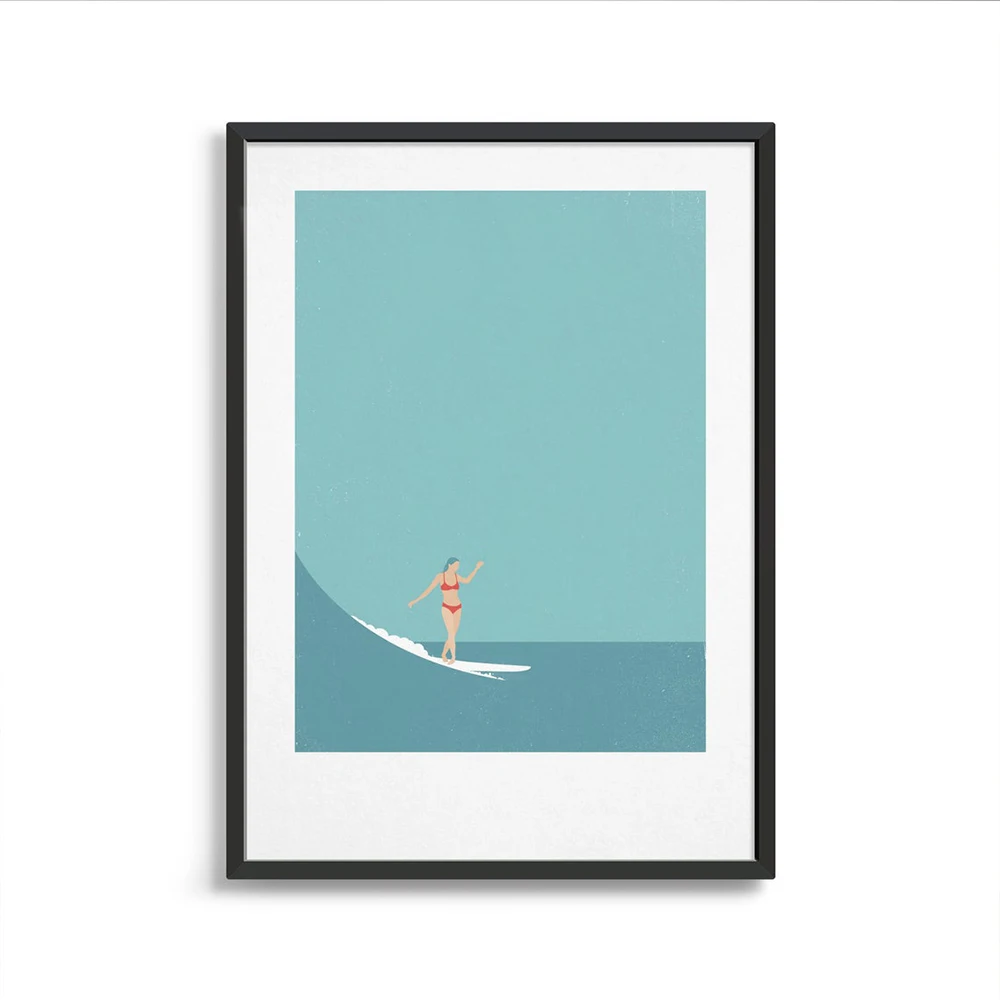 Пляжная Картина на холсте, девушка для серфинга, Васильковая стена, длинборд, волны, настенные картины заката, современный минималистичный художественный плакат, декор спортивной комнаты
