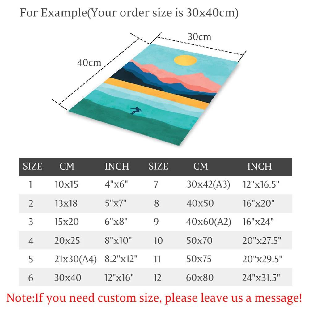 1. Цена указана за одну штуку, каждый размер соответствует разной цене и разному изображению, пожалуйста, обратите внимание, чтобы выбрать размеры и фотографии.2. Все продукты не содержат каких-либо рамок или дополнительных границ, соотношение изображения будет скорректировано в соответствии с размером, который вы приобрели (слегка СЖАТЫЙ или обрезанный).3. Все продукты профессионально напечатаны высококачественными чернилами на высококачественном водонепроницаемом матовом холсте, чернила, которые мы выбираем, являются высококачественными экологически чистыми пигментными чернилами, но это нормально для всех печатных продуктов иметь небольшой запах чернил.4. Цвета, которые вы видите на вашем мониторе, могут быть близки к тому, что напечатано, но из-за различий в цветовой калибровке мониторов, идеальное соответствие не может быть гарантировано.