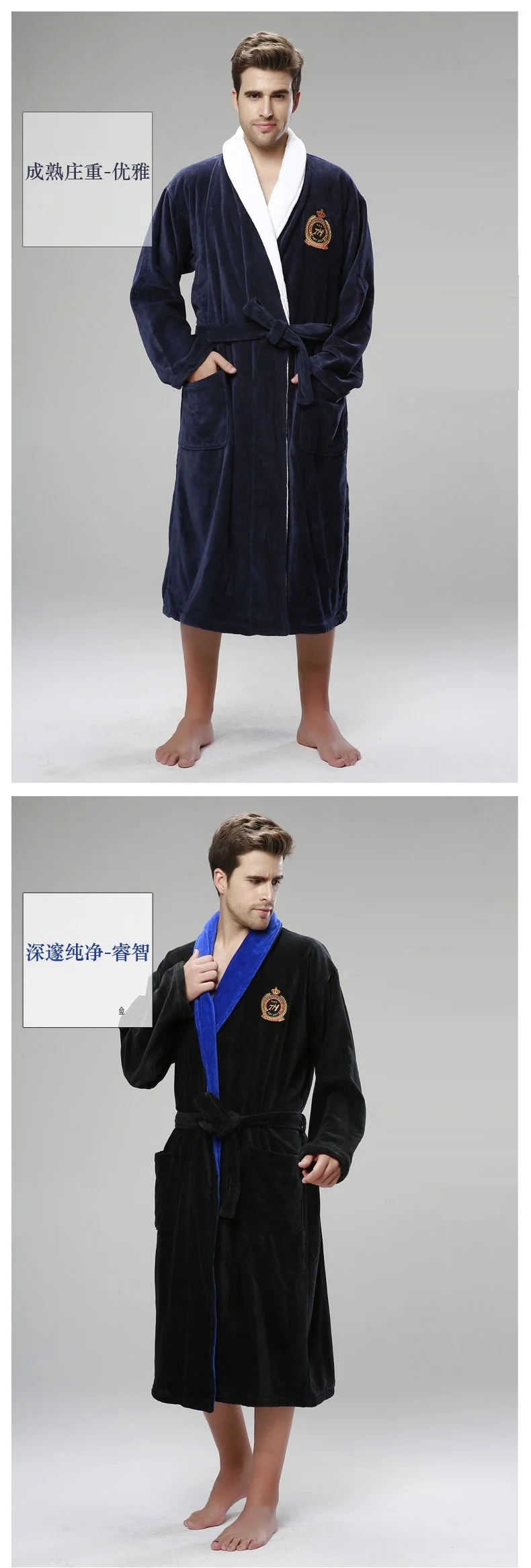 Размера плюс Для мужчин банный халат; Зимняя одежда для сна; Плюшевый халат человек Халат, домашний халат из махровой ткани одноразовые гостиничные тапочки Для мужчин кимоно халаты