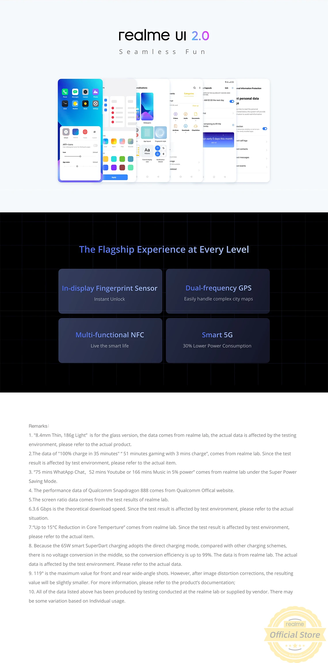 Сделано с 6,43 дюймовым игровым экраном Samsung Super AMOLED, realme GT идеально сочетает в себе ультра-высокую частоту обновления 120 Гц и частоту дискретизации касания 360 Гц со 100% широкой цветовой гаммой P3 и насыщением цвета 98% NTSC, чтобы представить цвета так, как вы их видите В реальной жизни.