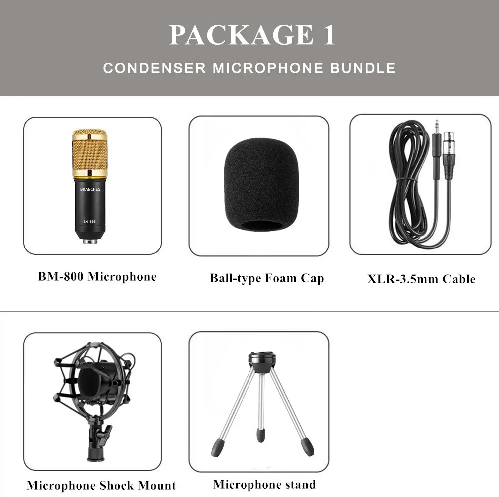 BM-800 Профессиональный конденсер, микрофон, BM800 комплект: микрофон для компьютера + подвесом + пена Кепки + кабель как BM 800 микрофон