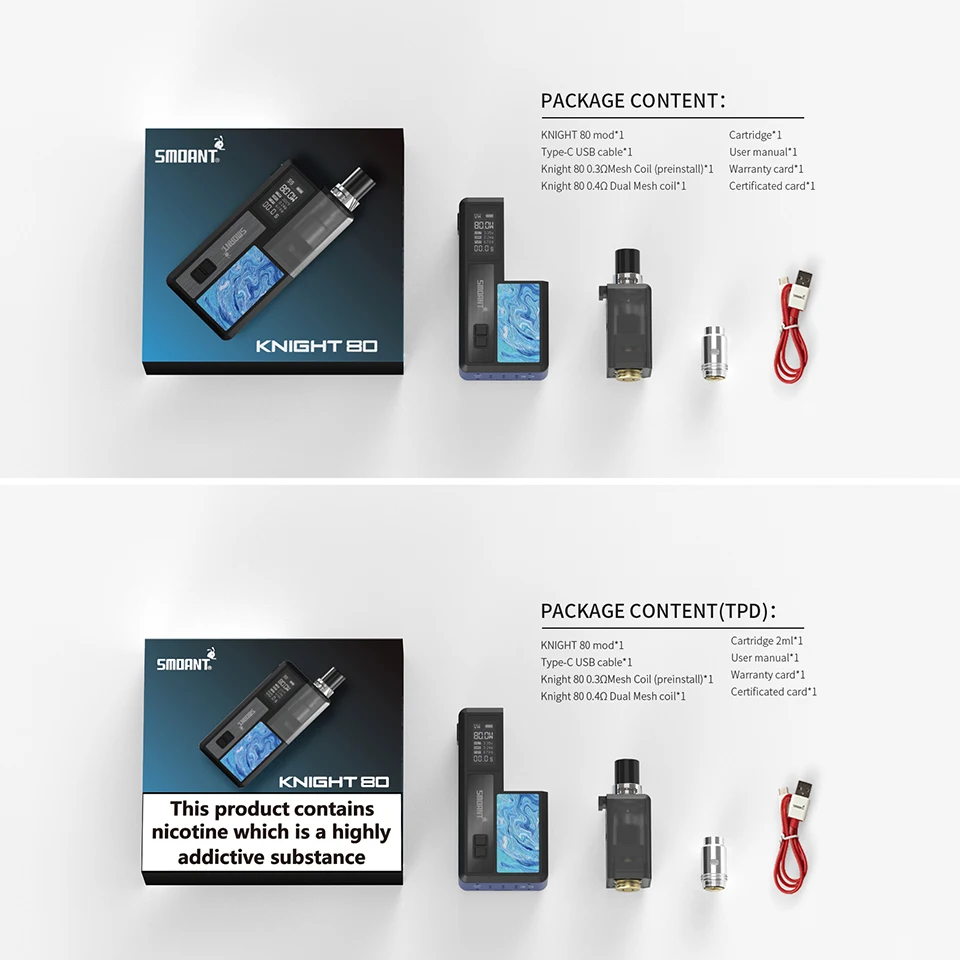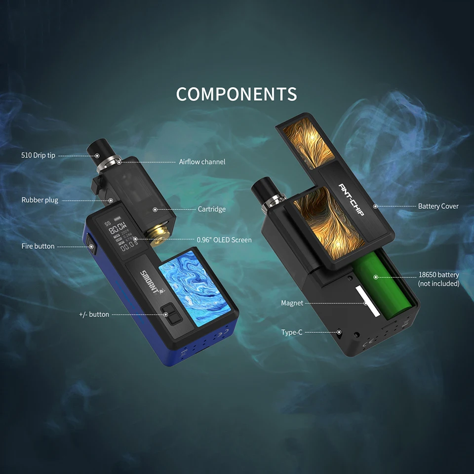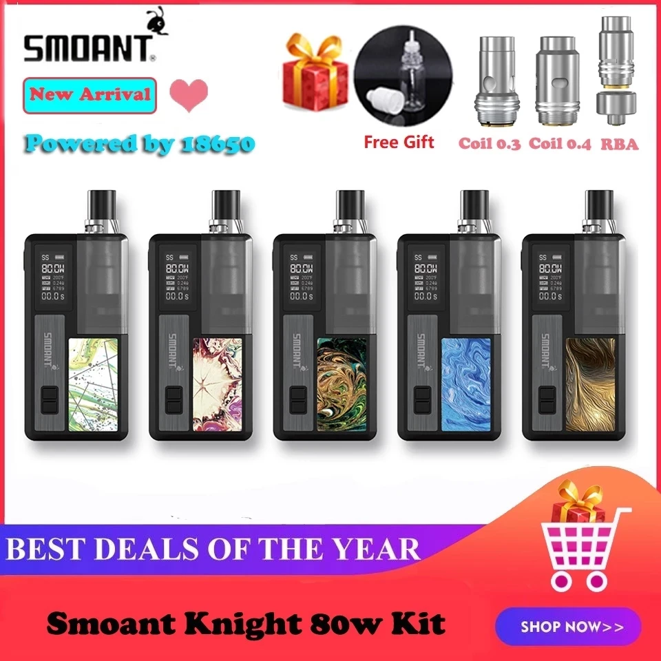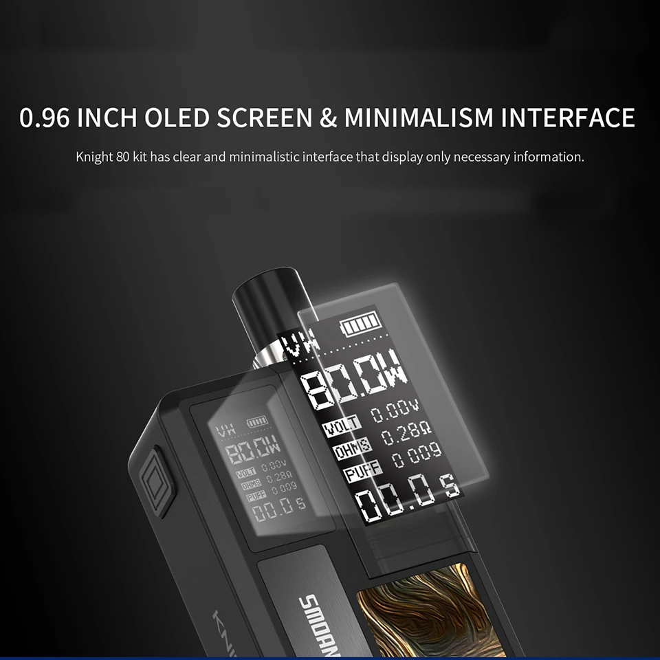 Набор Smoant Knight 80 Вт, перестраиваемая катушка RBA с сетчатым экраном OLED 0,96 дюйма, питание от 18650