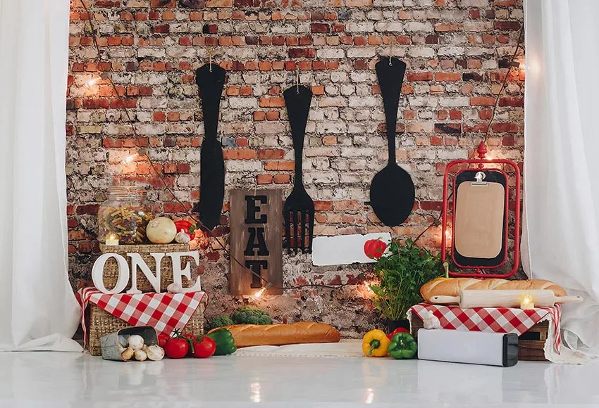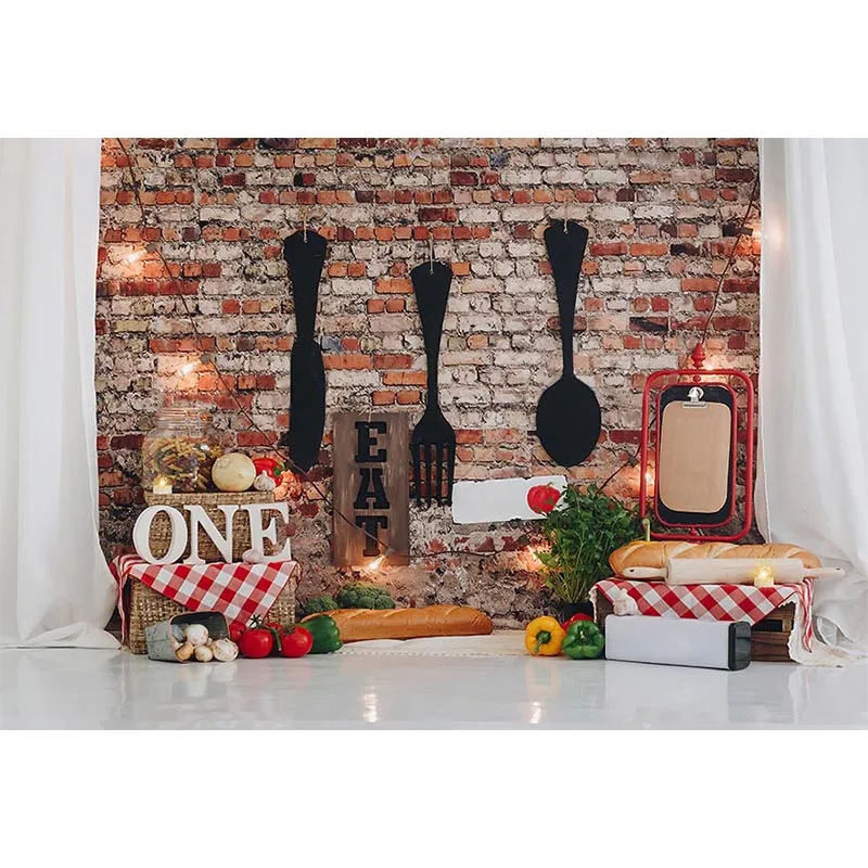 Фон для фотосъемки на 1-й День рождения шеф-повара ингредиенты красная кирпичная стена Фотофон для фотостудии