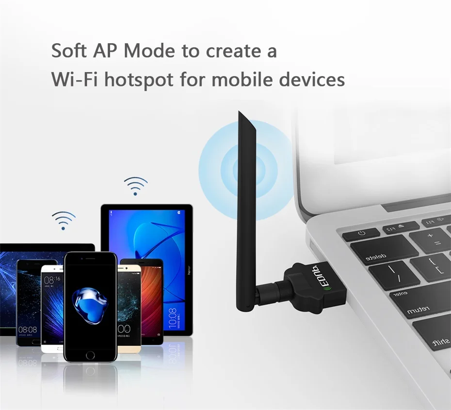 Характеристики:Чипсет RTL8812BUСтандарт IEEE802.11 a/b/g/n/acАнтенна с высоким коэффициентом усиления 2DbiЧастота 2,4 ГГц/5 ГГцСкорость передачи данных до 2,4 ГГц до 400 Мбит/с и 5 ГГц до 867 Мбит/сПоддержка мягкого APУправление система: windows XP / Vista / 7/8/10, MAC OS X 10.13.4 /10.13.3 /10.13.2 /10.13.1/10,12. Х/10,11. Х/10,10. Х/10,09. XПосылка:1*1300 Мбит/с беспроводной адаптер1 * CD драйвер1 * Руководство пользователя на английском языкеКак использовать:Во-первых, поместите компакт-диск драйвера в CD-ROM компьютераВо-вторых, установите программу драйвераВ-третьих, подключите адаптер wifi к компьютеру, затем адаптер wifi может работать