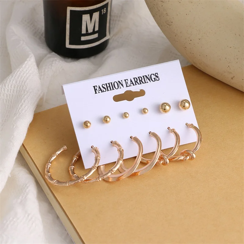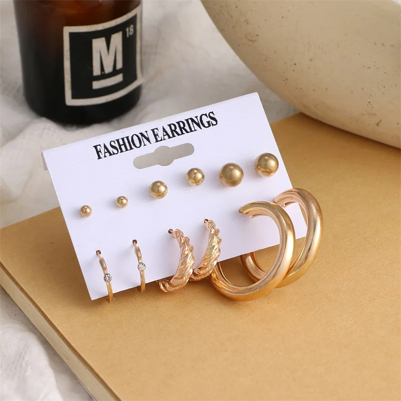 New DesignEN Fashion Gold Chain Hoop Earrings Set For Women Girls