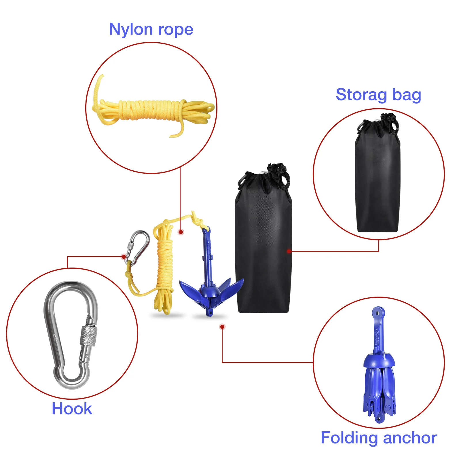 Полный комплект для каякинга/лопасти, включая якорь, 16,4 ножной трос, пружинный крючок и сумку для хранения.