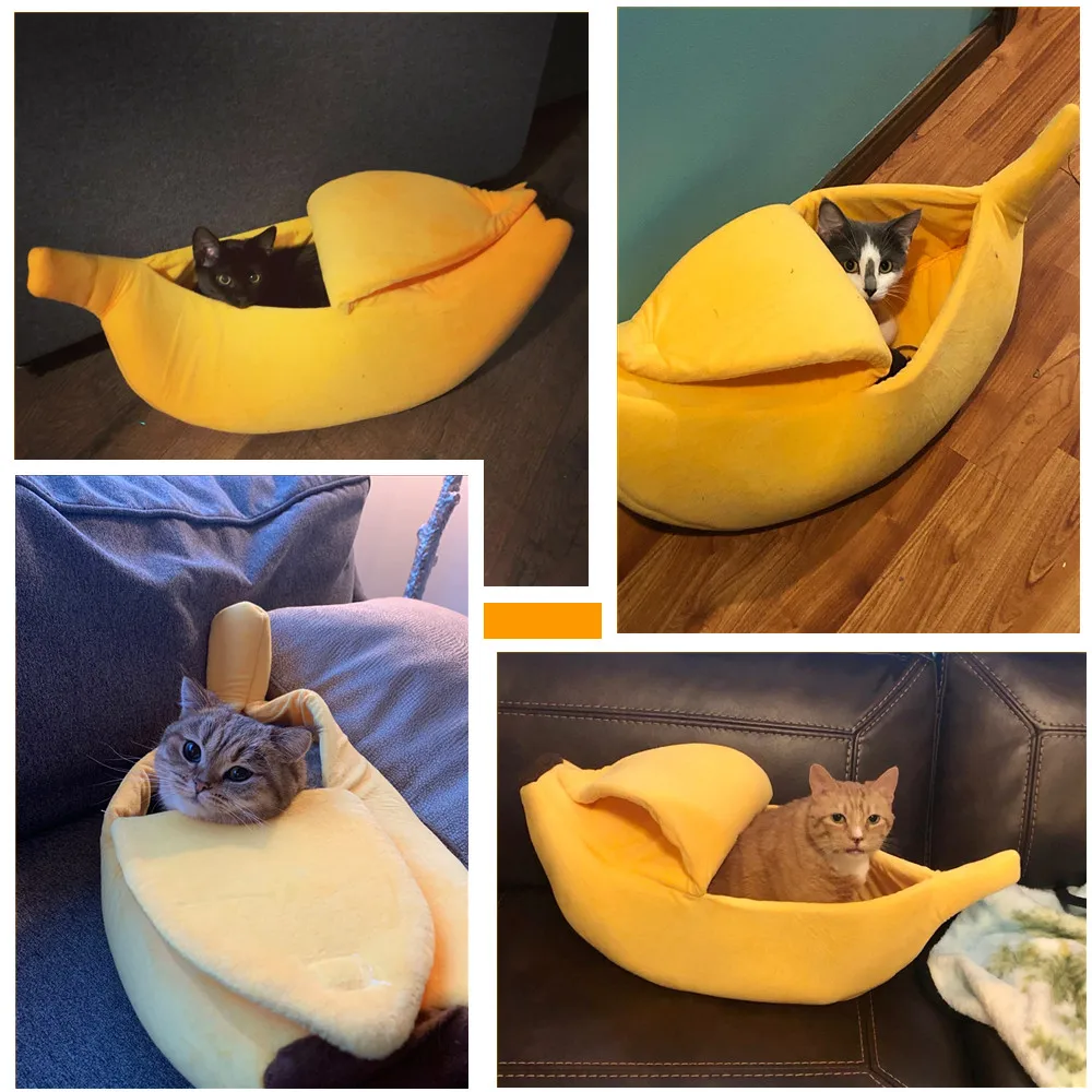 Креативная стильная будка-гнездо для бананов, кошек, собак, согревающая желтая домашняя кровать для домашних животных, съемная моющаяся утолщенная лодка, коврик для домашних животных