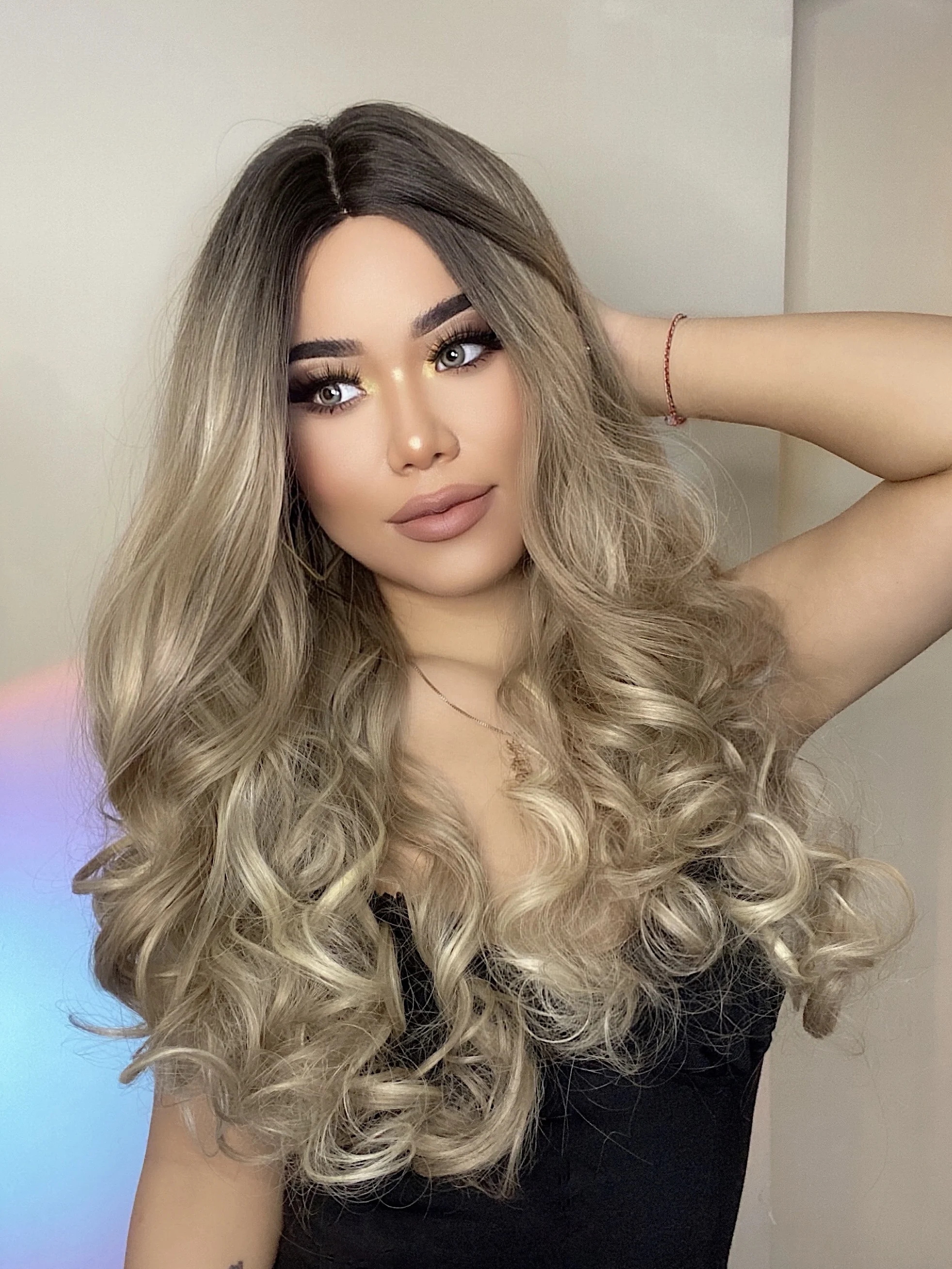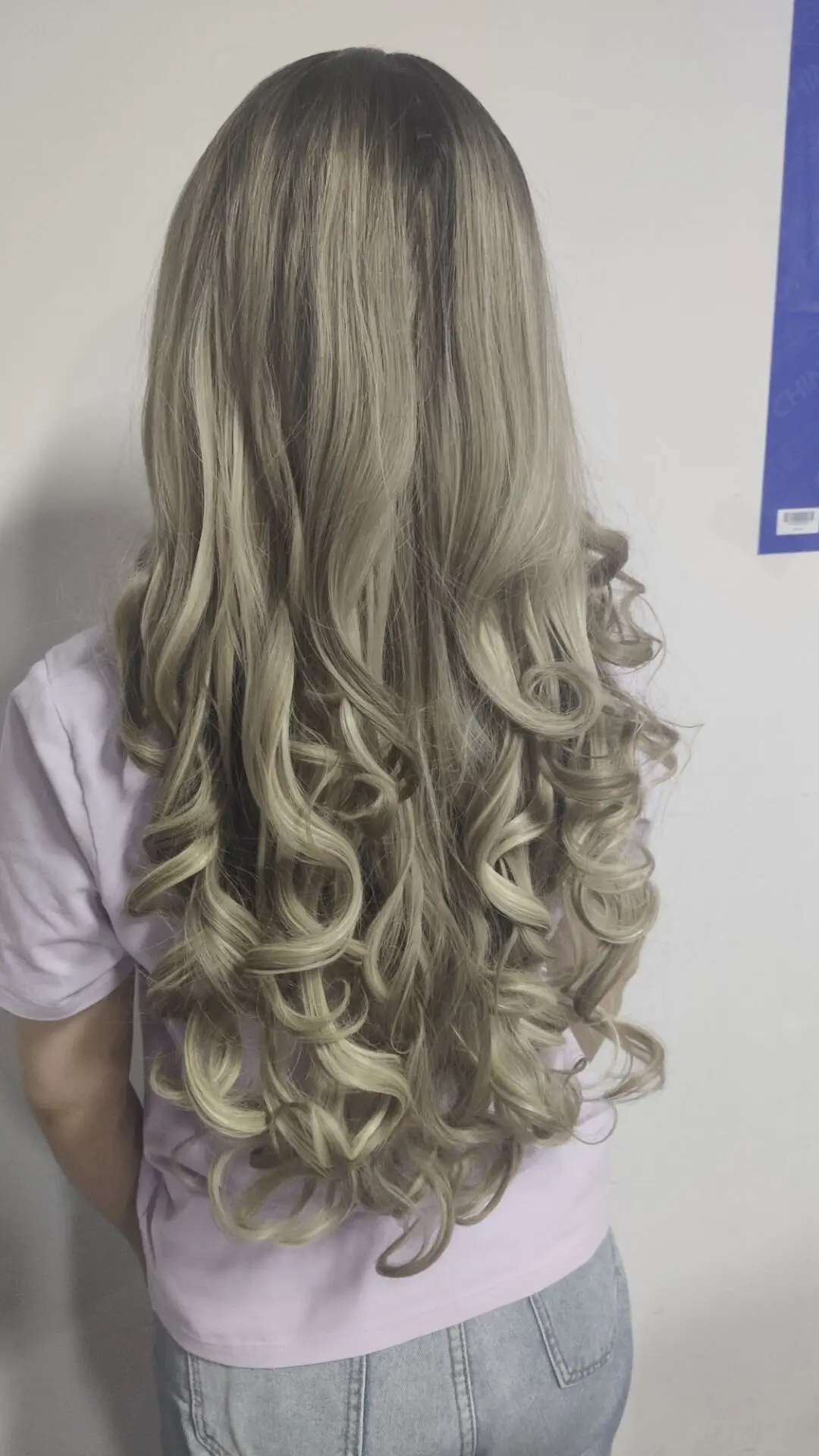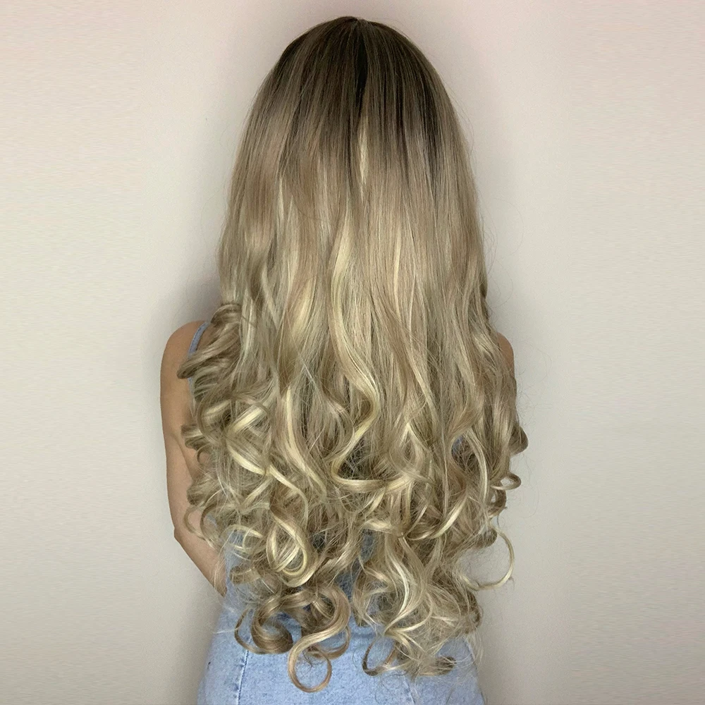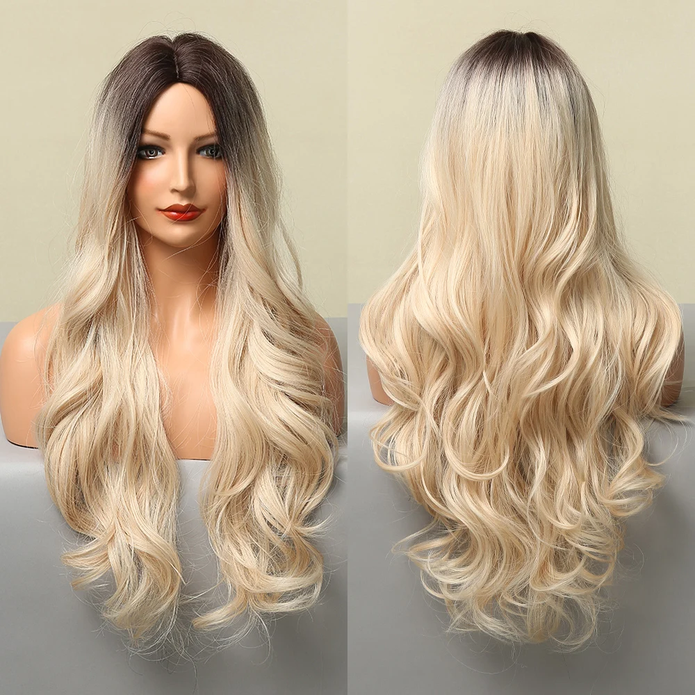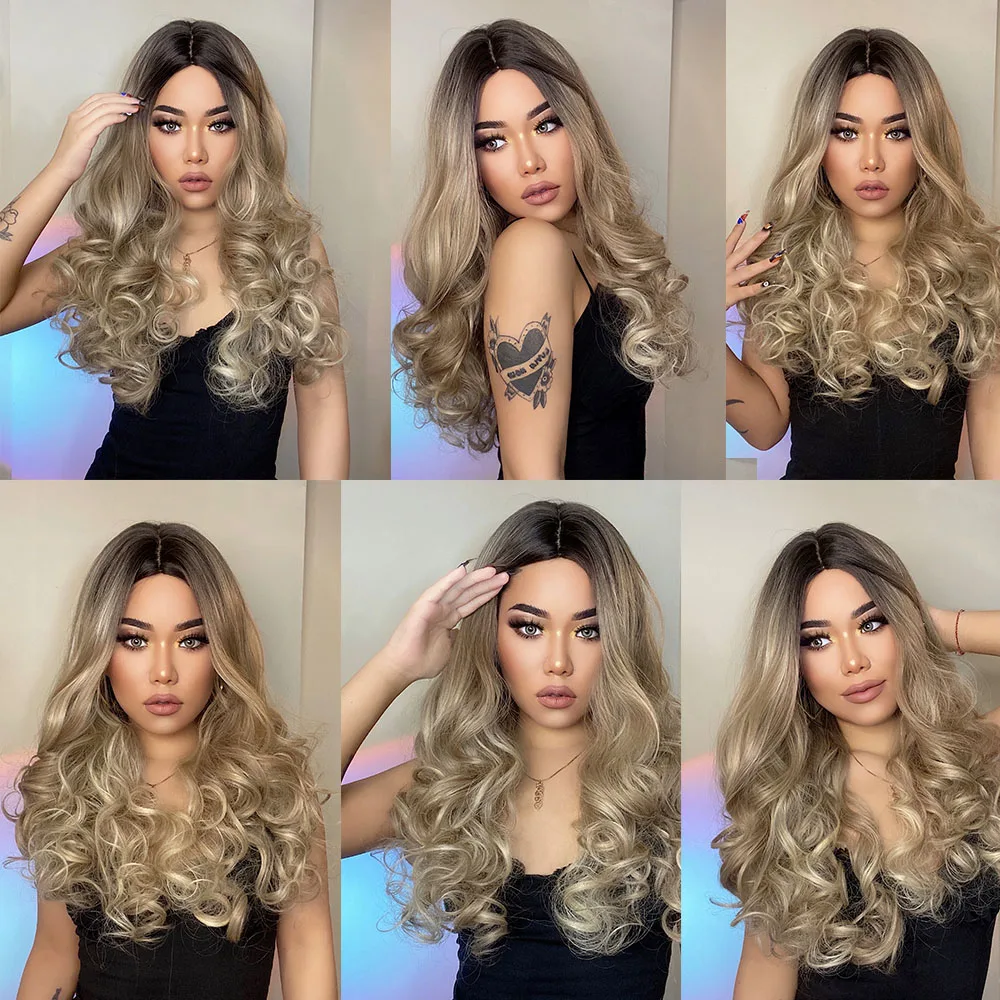 Генри MARGU эффектом деграде (переход от темного к коричневого цвета шампанского блондинка изюминка Длинные свободные волны парик из синтетических волос натуральные накладные волосы для Для женщин термостойкие