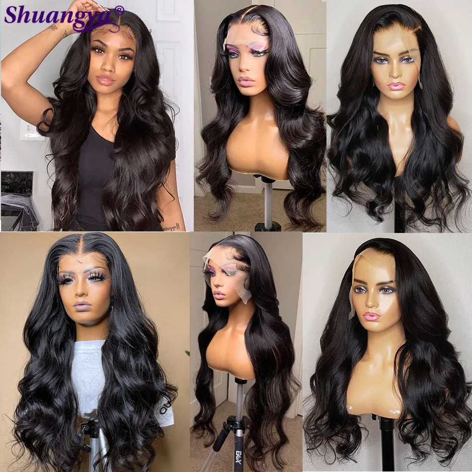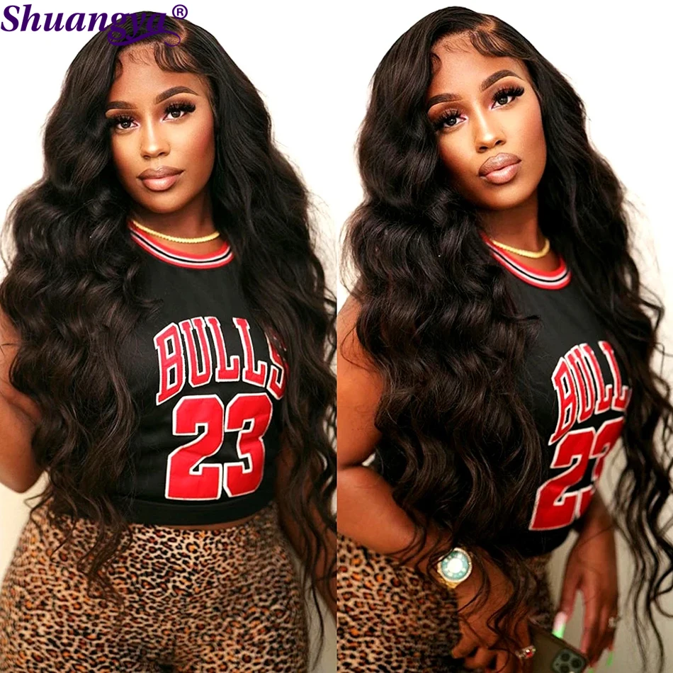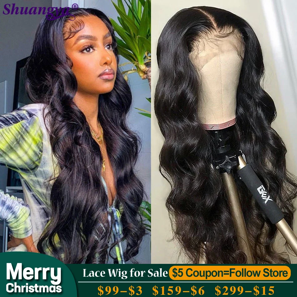 Парики из натуральных волос на кружеве, объемная волна, индийские волосы Remy, парики из натуральных волос Shuangya, волосы 4x4 5x5 Hd, парики на шнуровке для черных женщин