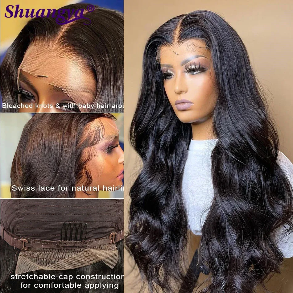 Парики из человеческих волос на фронте шнурка, индийские волосы Remy, парики из человеческих волос на шнурках, волосы Shuangya, 4x4, 5x5, Hd, парики на шнурках для черных женщин