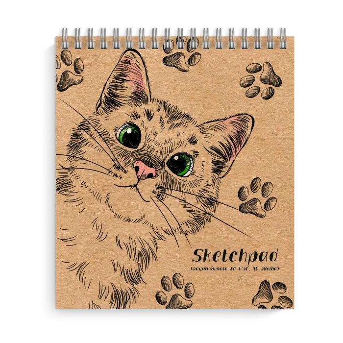 Скетчпад, размер 168х195 мм, 40 листов. Внутренний блок - крафт-бумага 80 г/м2. Обложка - мелованный картон 190 г/м2. Вид крепления - гребень.