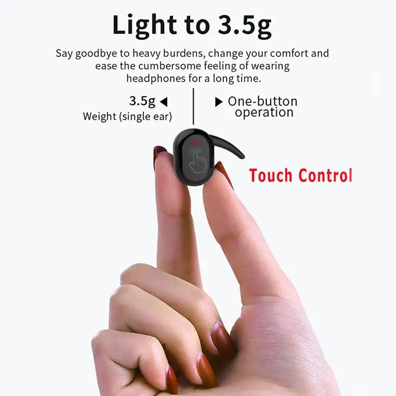Параметры гарнитуры1. Беспроводная версия: V5.0 + EDR2. Емкость аккумулятора: 40 мА · ч3. Напряжение зарядки: DC5V4. Расстояние передачи: 10 м5. Часы использования: 3-4 часа разговора, 3-4 часа воспроизведения музыки6. Время зарядки наушников: около 1 часаЗарядный чехол параметры:1. Входной ток: 5 В 1A(TYP)2. Зарядный чехол емкостью 350 мАч3. Батарея чехол Время зарядки: около 1,5 часов