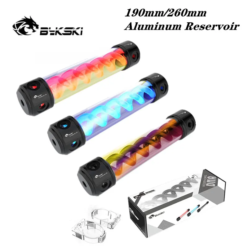 Резервуар Bykski для воды, цилиндрический, алюминиевый, поликарбонат, многоцветный, спиральный, RGB 12 В5 В, 190260 мм, CT-DNA-AL-V2
