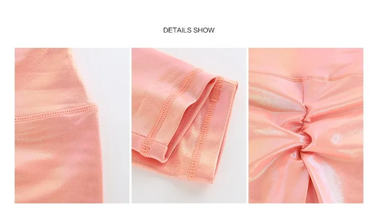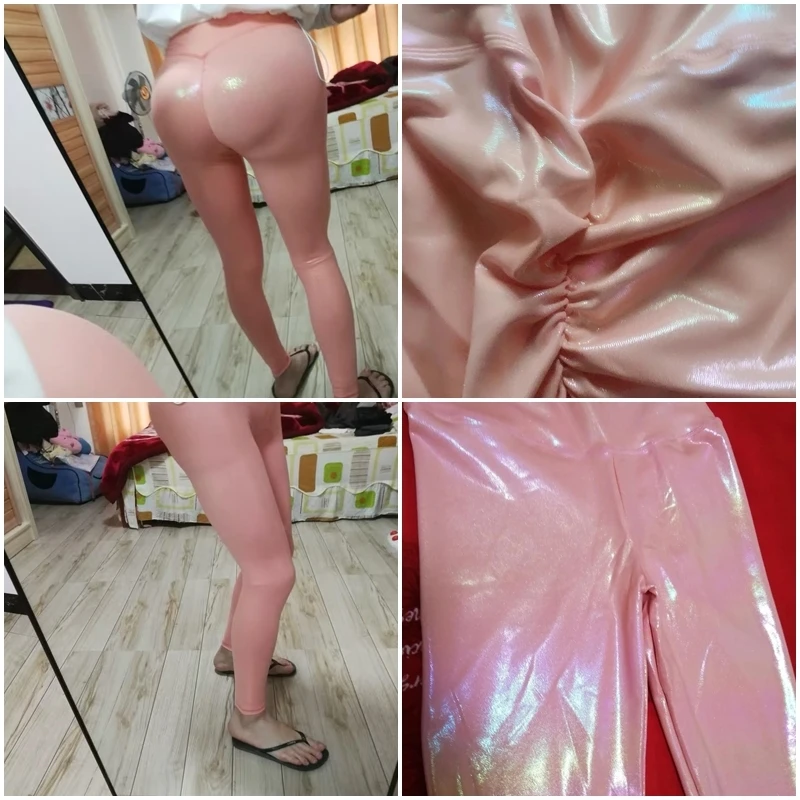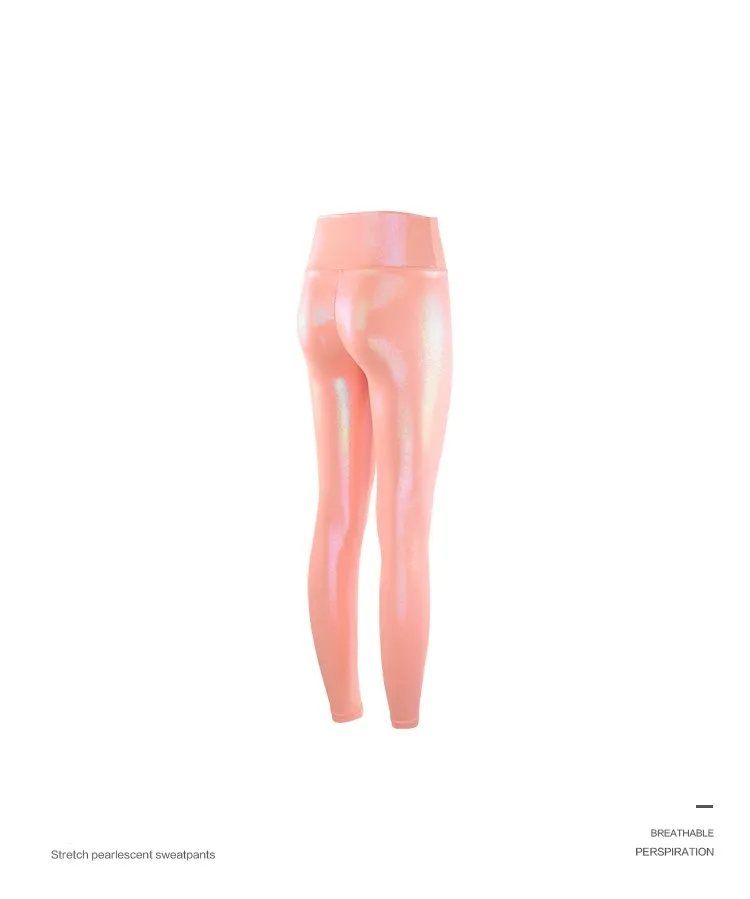Штаны Для Йоги блестящие розовые глянцевые леггинсы с высокой талие...