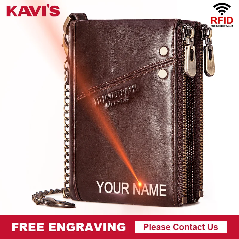 KAVIS, Бесплатная гравировка, Rfid, кошелек из натуральной кожи, му...