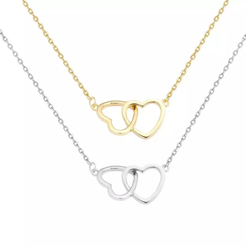 Модные женские ожерелья с двумя сердечками, d, Женский изысканный ч...