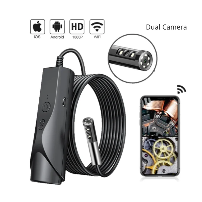 Эндоскоп с двойным объективом и Wi-Fi, 4,9 мм, 8 мм