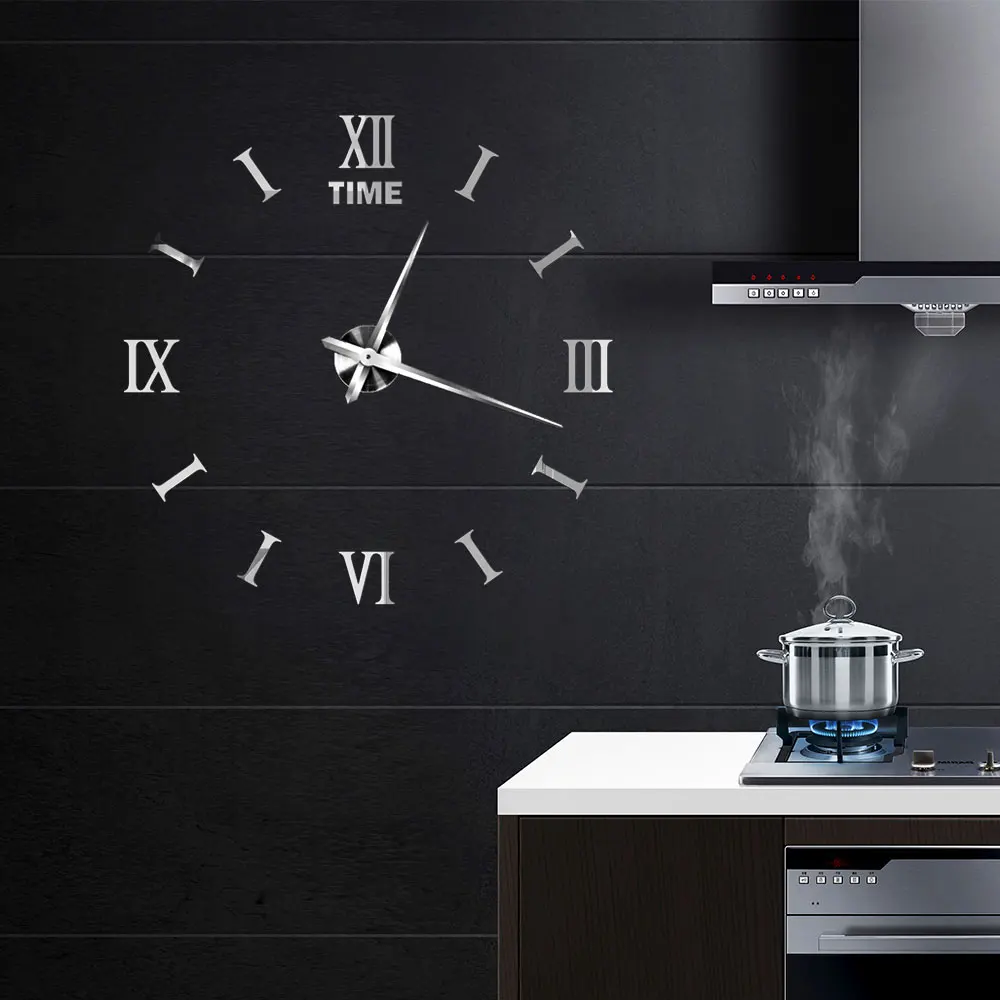 Большие настенные часы reloj de pared 3D, сделай сам, большие декоративные кухонные кварцевые часы, акриловые зеркальные наклейки, настенные часы, европейские часы