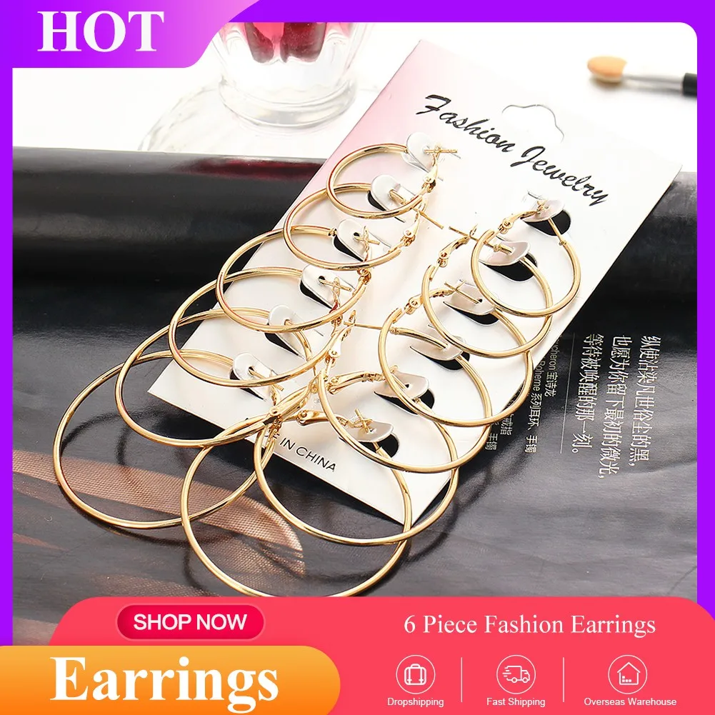 6 шт Высокое качество простой стиль 2 Цвет большие серьги в виде колец, серьги-пуссеты
