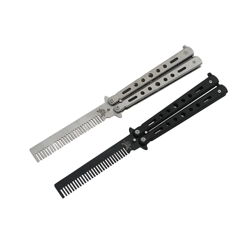 Складная расческа из нержавеющей стали, 1 шт., тренировочный нож-бабочка, расческа для бороды и щетки для усов, инструмент для укладки волос