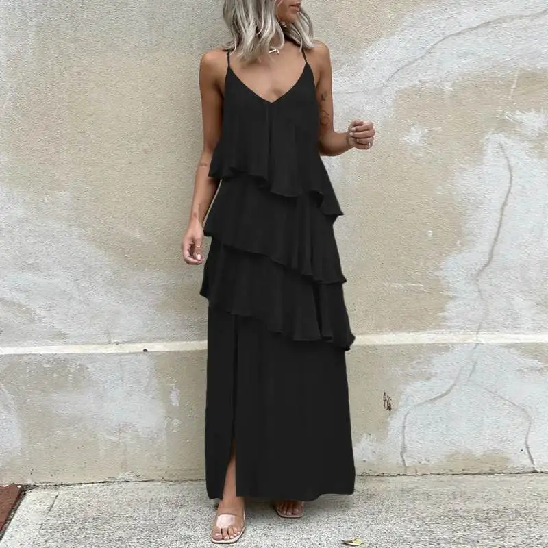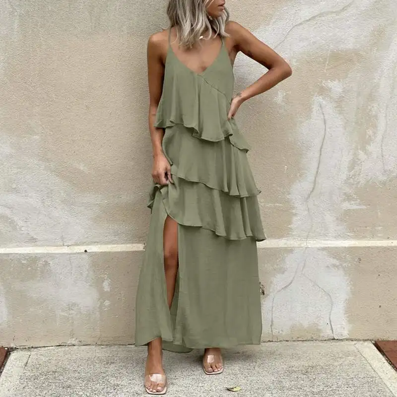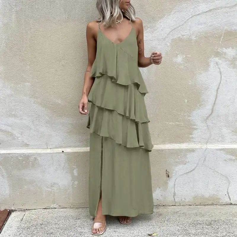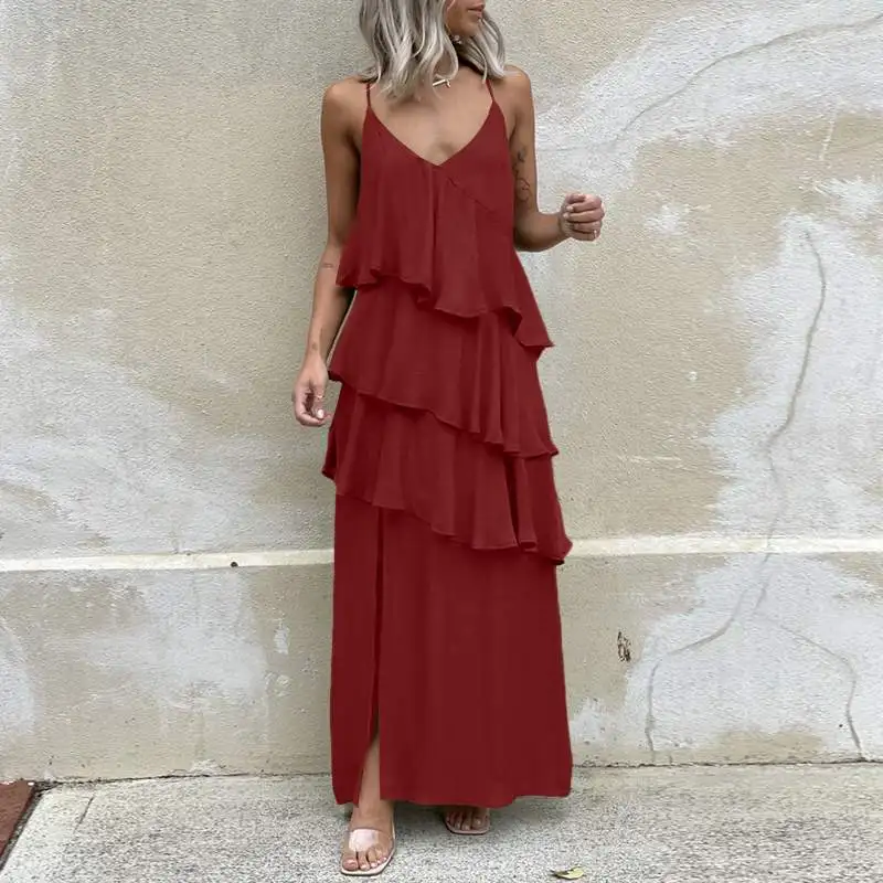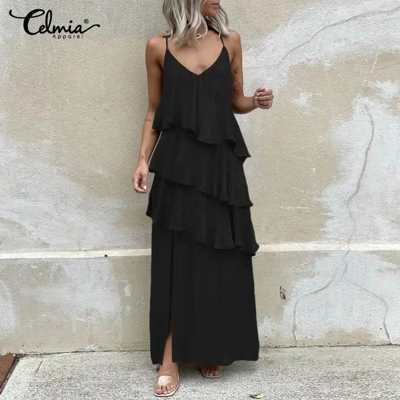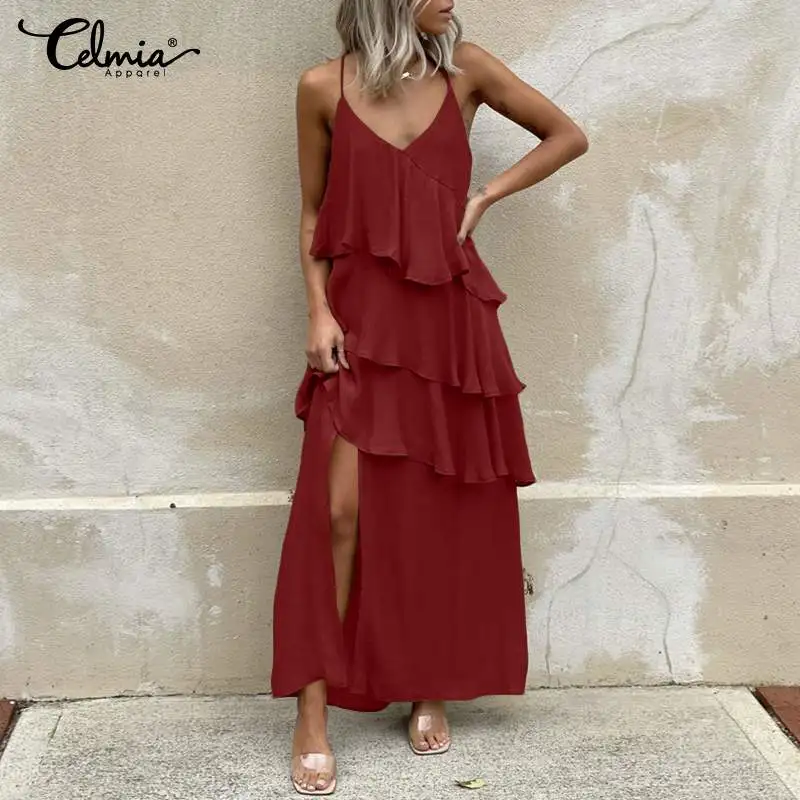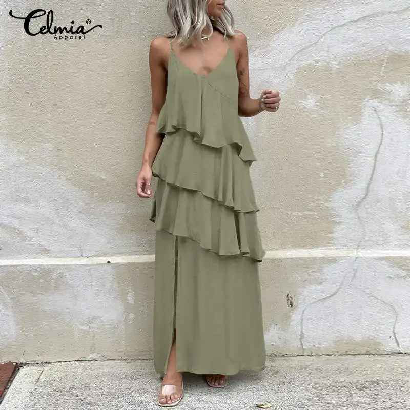 Летний сарафан Celmia в богемном стиле, женское многослойное платье макси с оборками, сексуальное повседневное праздвечерние чное платье на бретелях-спагетти с V-образным вырезом