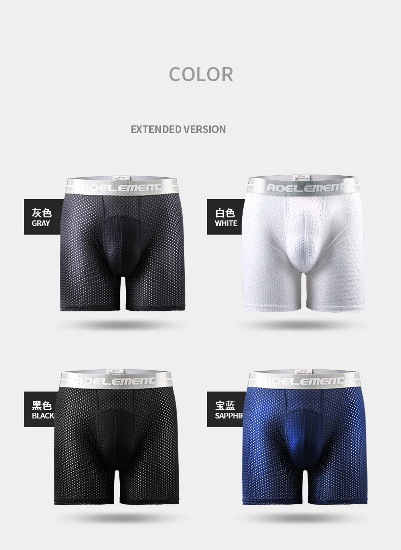 L-6XL Для мужчин, боксеры, мужское нижнее белье, сексуальный Ice Silk сетчатые трусики уличная Мужская обувь водонепроницаемый дышащий чехол средней длины ноги Трусы-шорты, мужские плавки, большой Размеры