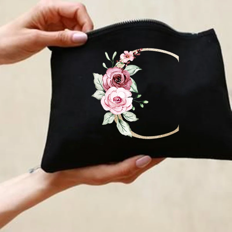 Косметичка с 26 буквами и цветочным принтом для женщин, чехол для к...