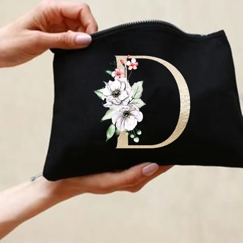 Модные золотые красивые косметички с буквами и цветами, сумка для т...
