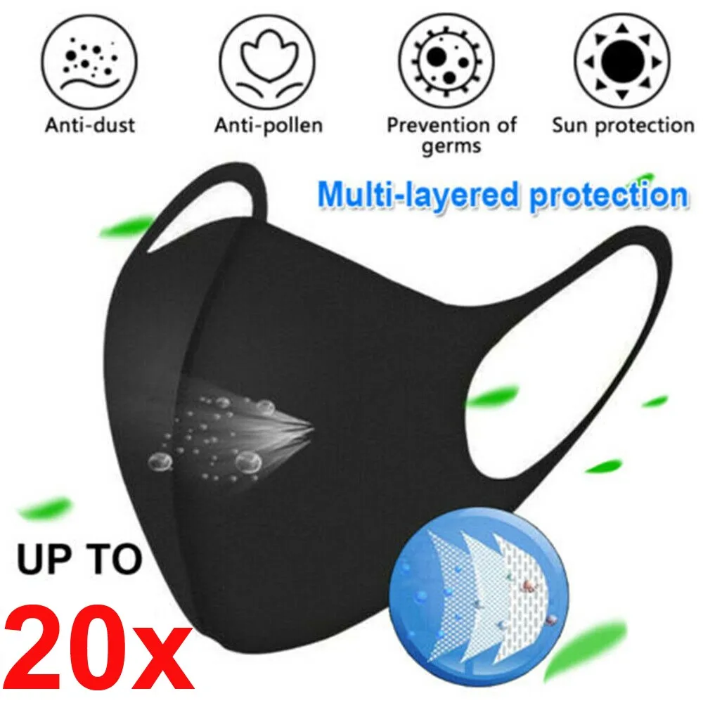 Черная маска для рта 20 шт., многоразовая Пылезащитная маска, моющаяся маска, маска для лица, маска для смога, ручная маска, ручная маска d4