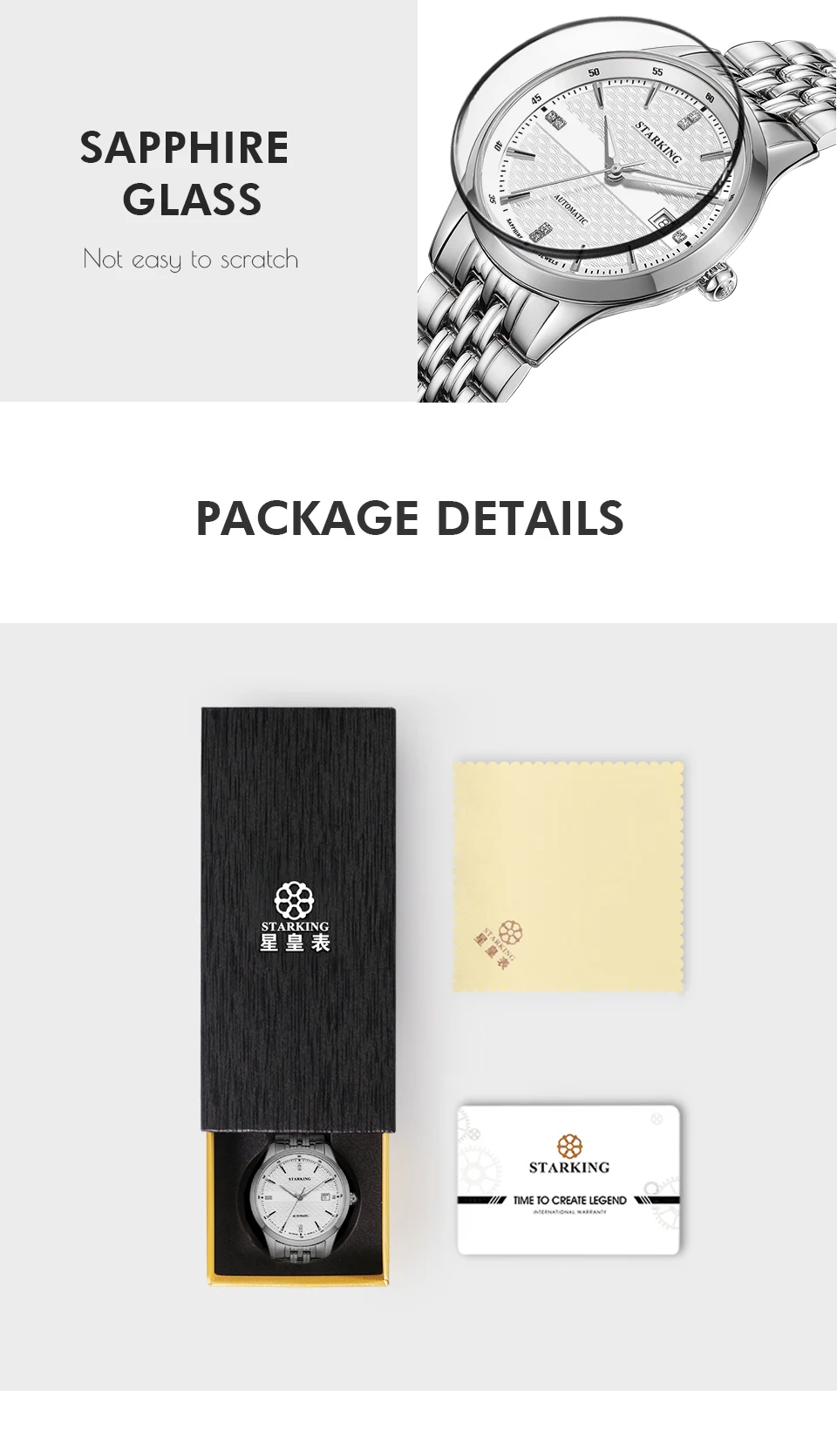 Материалы-Номер модели: AM0190-Чехол из нержавеющей стали 316L-Ремешок из натуральной кожи/ремешок из нержавеющей стали 316L-Японский Miyota 8215 автоматический механический movt-Сапфировое стекло-Водонепроницаемость 50 м-Функция автоматической даты, отображение календаря-Гарантия 12 месяцевРазмер-Чехол Диаметр: 40 мм-Чехол Толщина: 12 мм-Ширина ремешка: 20 мм-Длина ремешка: 220 ммПосылка в комплекте-1 шт. фирменные оригинальные часы STARKING-1 оригинальная коробка для часов-Гарантийный талон, руководство по эксплуатации-1 шт. тканевая салфетка для чистки часов