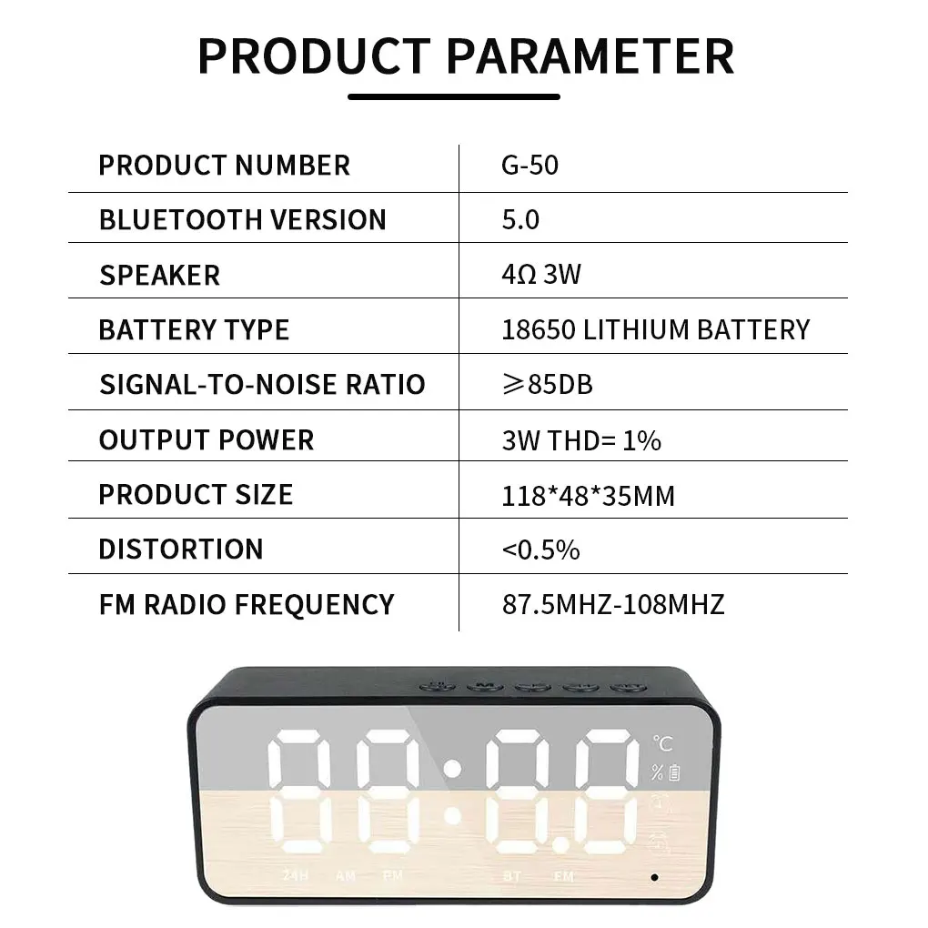 Описание:Есть два отдельных будильника, которые можно установить и использовать самостоятельно.Громкость будильника постепенно увеличивается, чтобы разбудить вас, и он также может использоваться в качестве bluetooth-динамика, удовлетворяя ваши различные потребности.Встроенный микрофон громкой связи прост в использовании, когда на телефоне, используйте динамик в качестве громкоговорителя и свободно зажимайте руки встроенным микрофоном, удобно для вашей жизни.Этот вид bluetooth совместимым динамик и FM радио-это «2 в 1» и легко получить FM радио, чтобы слушать в любое время и в любом месте, экономия денег для вас.Большой светодиод отображает время и содержание с первого взгляда, поддерживая три различных настройки яркости, подходит для чтения перед сном и сопроводительного сна после сна. Яркость можно регулировать гибко.Спецификация:Совместимость с Bluetooth: 5,0.Дальность передачи: 10 м.Частотная характеристика: 80 Гц-20 кГц.КВ: ≥ 85 дБ.Искажение: <0.5%.Выходная мощность: 5 Вт.Напряжение зарядки: 5V-1A.Тип аккумулятора: 3,7 в 1400 мАч.TF карта: Поддержка TF (максимальная поддержка 16G).Цвет: как показано на картинке.Примечание:В связи с неточной передачей цвета на экране монитора фактический цвет товара может немного отличаться от цвета на изображении.Пожалуйста, учитывайте незначительные отклонения для данных измерений и убедитесь, что вы не возражаете перед заказом.Посылка включает в себя:1 * Bluetooth-совместимый динамик.1 * зарядный кабель.1 * Руководство пользователя.