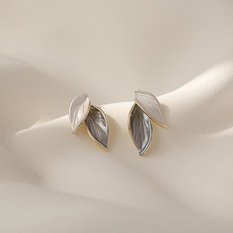 Корейская мода серьги 2021 тенденция личности эмалевый листочек, се...