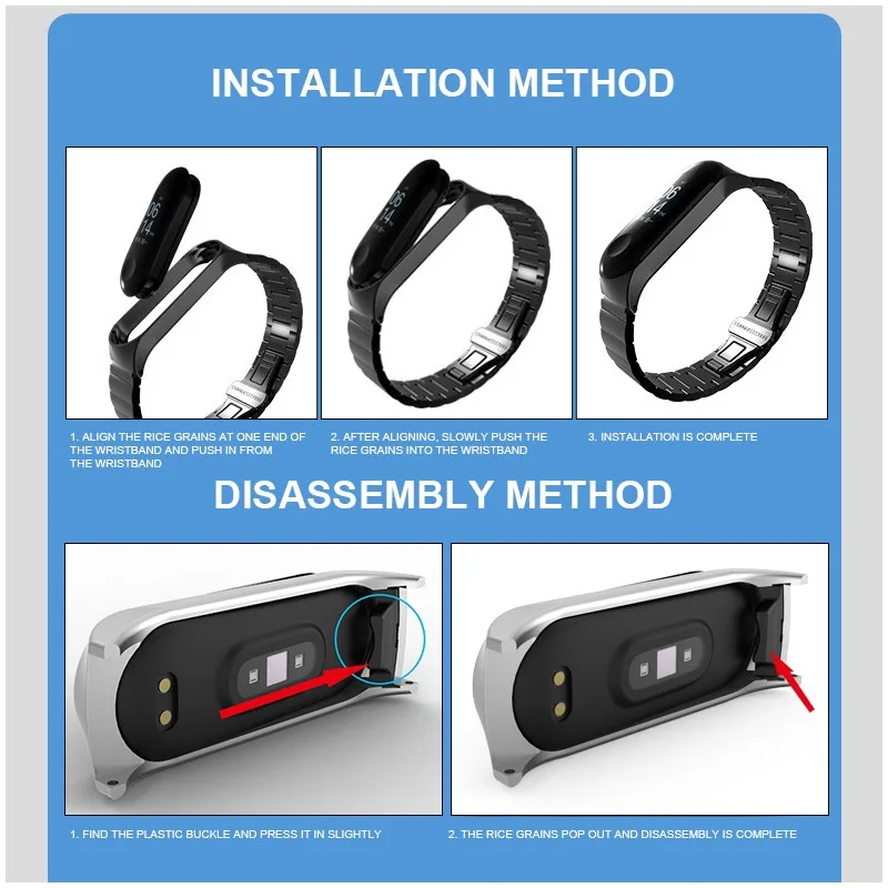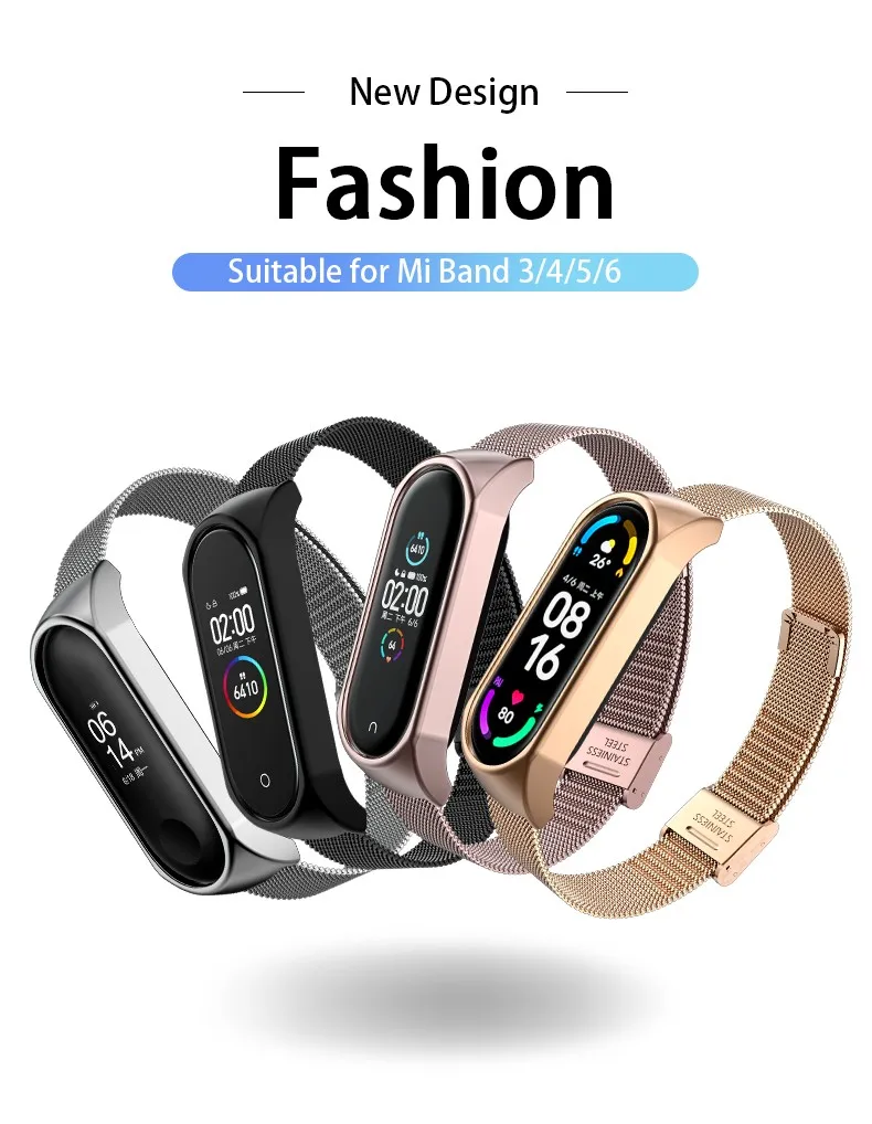 Браслет из нержавеющей стали для Xiaomi Mi Band 3 4 5 6