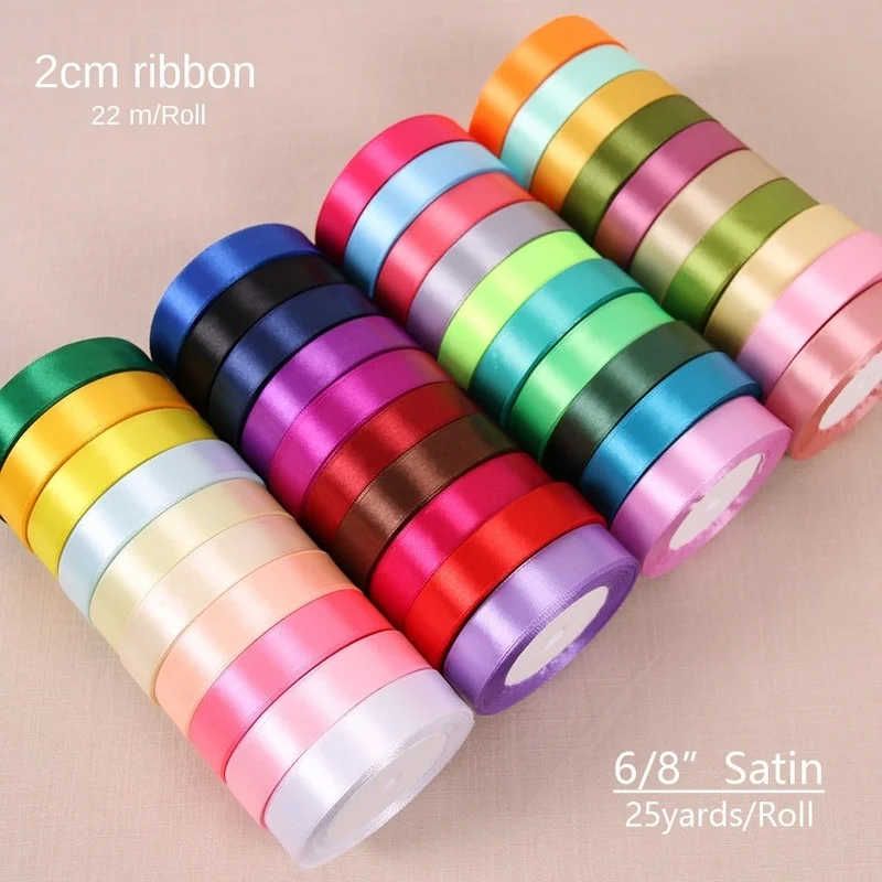 Лента атласная, 20 мм, 25 ярдов в рулоне, для украшения свадьбы, рождественской вечеринки, для самостоятельного изготовления банта, упаковки подарков, открытка с лентой